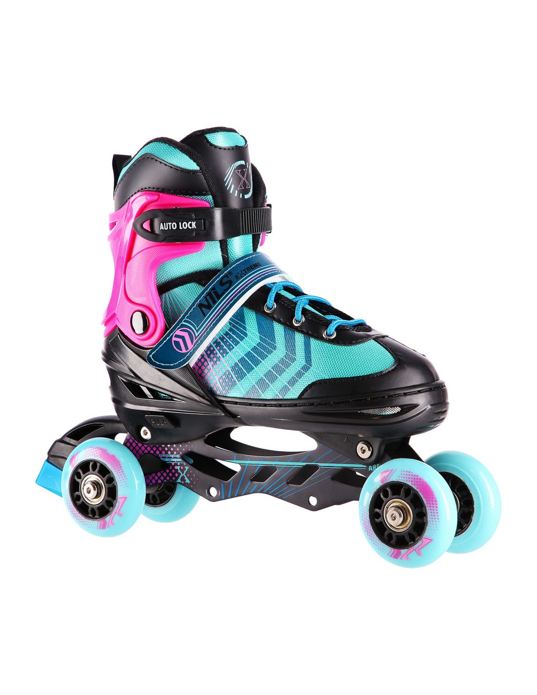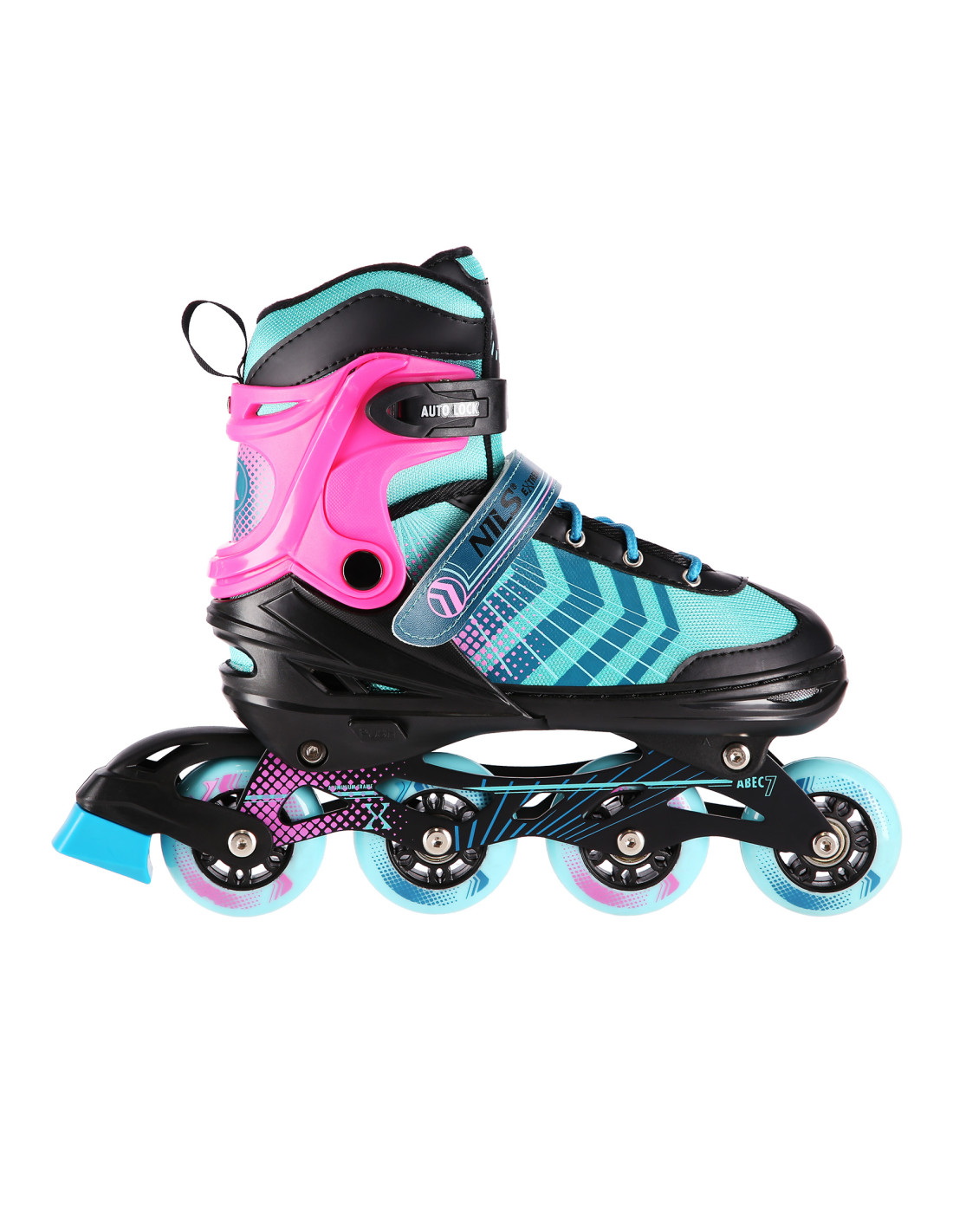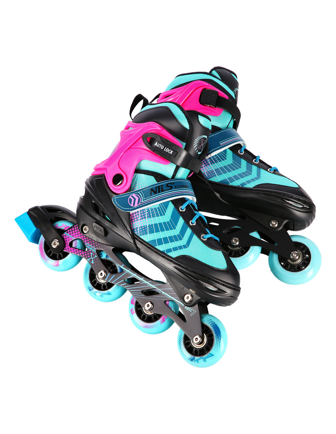 Das Produkt NH18192 steht für reine Freude. Mit der Möglichkeit der Verstellung einer zusätzlichen Rolle auf die Hinterachse können sich die Inliner funktional in Inliner-Rollschuhe verwandeln. Diese Lösung erleichtert den Jüngsten, die ersten Schritte im Inlineskating zu tun. Mit der Möglichkeit der Befestigung von einer zusätzlichen Rolle auf die Vorderachse kann das Produkt sich funktional in Rollschuhe verwandeln. Die Inliner sind mit einer speziellen Alu-Schiene und einer Bremse ausgestattet, die die Sicherheit während der Benutzung gewährleisten. Die Rollen der Klasse ABEC7 ermöglichen Ihnen einen geringeren Rollwiderstand und gleichzeitig können Sie schneller fahren.