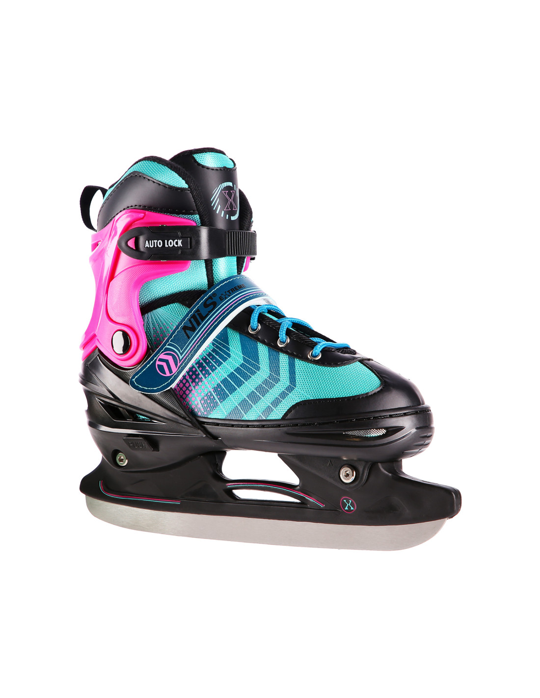 Die Schlittschuhe NH18192 Nils Extreme zeichnen sich durch sehr gute Fahreigenschaften aus. Dies erreicht man durch die Kufen, die aus hochwertigem rostfreiem Stahl hergestellt wurden, und durch das System von vielen Verschlüssen (d.h. Klettverschluss, Verschlussschnalle und Schnürung). Dieses System ist für die Stabilität der Füße verantwortlich. Das alles trägt dazu bei, dass dieses Modell unter allen Bedingungen genutzt werden kann und Ihnen ausgezeichnete Erlebnisse während der Fahrten gewährleistet.