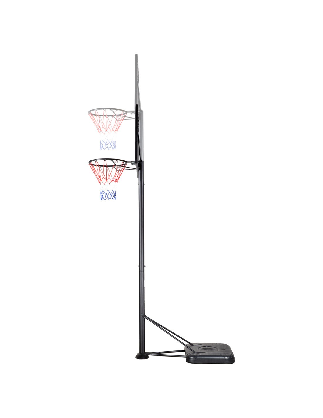 ZDK019E ist ein Basketballkorb mit dem freistehenden, mobilen Ständer, der sich ideal während der individuellen Trainings oder zum Basketballspiel eignet. Dank der Höhenverstellung lässt sich die Höhe des Korbes an die Körpergröße und die Fähigkeiten des Benutzers anpassen. Die maximale Höhe des Korbrings beträgt bei diesem Modell 3,05 m. Das ist die offizielle Höhe nach den Vorgaben, die beim Basketballspiel erforderlich ist. Die Produkte der Marke NILS zeichnen sich vor allem durch die hochwertigsten Materialen aus. Das Basketball-Board wurde aus sehr robustem PE hergestellt. In Verbindung mit dem Korbring aus Stahl wird die langjährige Benutzung gewährleistet. Die Transportrollen sind an dem stabilen, mit Wasser oder Sand befüllten Tank befestigt. Das Volumen des Tanks beträgt 44,1 l. Daher ist das Produkt sehr mobil und gleichzeitig stabil. Jedes Element der Konstruktion ist wetterbeständig.