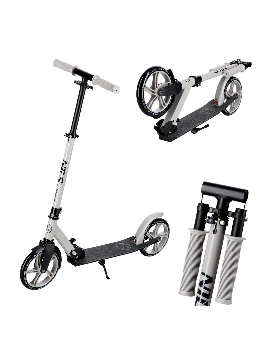 Der Roller eignet sich hervorragend für die Freizeitfahrt auf Asphalt, Betonoberflächen sowie gepflasterten Gehwegen. Der Lenker ist mit gummibeschichteten Griffen ausgestattet, die einen sicheren Halt bieten. Die dreistufige Höhenverstellung ermöglicht es, den Roller an die Größe des Benutzers anzupassen. Die ABEC7-Kugellager und die großen Räder (200mm) erhöhen die Stabilität und Laufruhe, während die breite Plattform das Gleichgewicht erleichtert. Zusätzlich gewährleistet die Fußbremse maximale Sicherheit während der Fahrt.