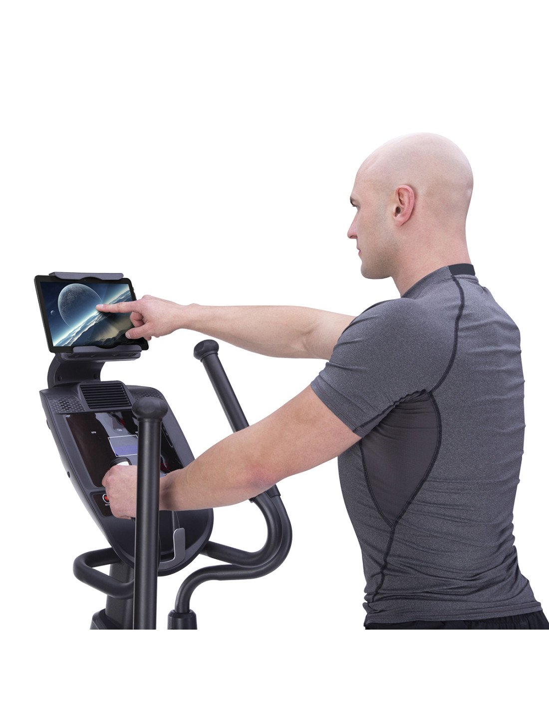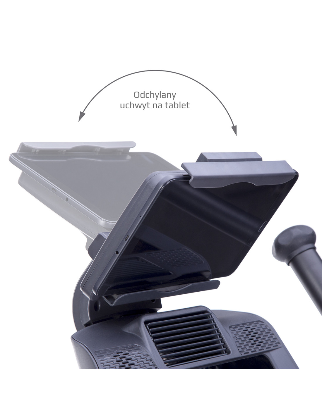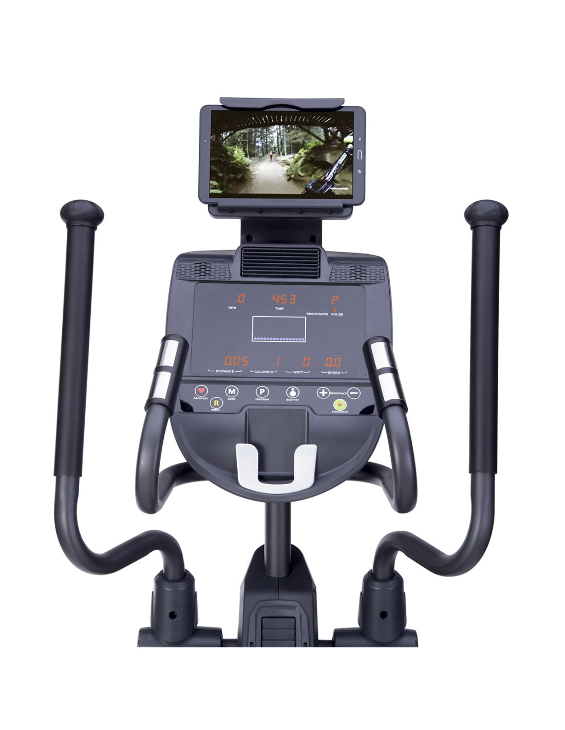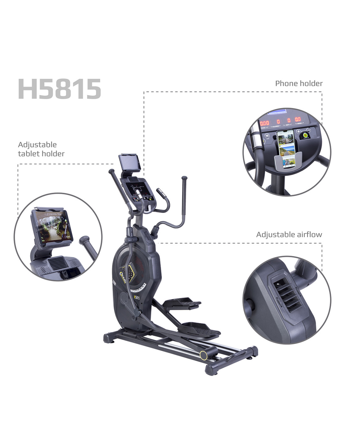 Der Crosstrainer hat einen modernen Computer mit dem LCD-Bildschirm. Die Benutzung des Computers ist sehr intuitiv und einfach. H5815 hat insgesamt 22 integrierte Programme. Jeder Nutzer, unabhängig von seiner Leistungsfähigkeit, findet ein richtiges Programm für sich. Der Computer zählt und zeigt alle wichtigen Trainingsparameter an. Außerdem ist der Crosstrainer mit einer Halterung für ein mobiles Gerät ausgestattet. Daher kann der Nutzer z. B. sein Tablet während des Trainings benutzen.