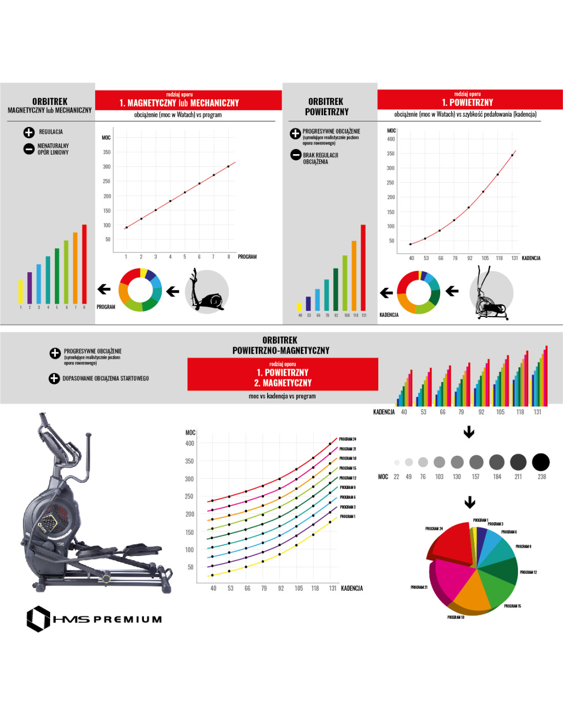 Der Crosstrainer H5815 HMS PREMIUM ist ein Gerät der Klasse SEMI COMMERCIAL, d. h. es ist sowohl für den Heimgebrauch und als auch für den Gebrauch in den kleinen Fitness-Clubs bestimmt. Sein größter Vorteil betrifft das Widerstandssystem. Dieser Crosstrainer verfügt über das Luft- und magnetische Widerstandssystem. Solche Lösung sorgt für einen reibungslosen Gebrauch, was im Falle gewöhnlicher Crosstrainer unmöglich ist. Außerdem erreichen Sie mit diesem Widerstandssystem endlose Möglichkeiten, das Gerät an Ihre Fitness anzupassen. Beim Luftwiderstand ist der Widerstand höher, wenn sie schneller die Bewegung ausführen. Der magnetische Widerstand ist hingegen ein klassisches Widerstandssystem.