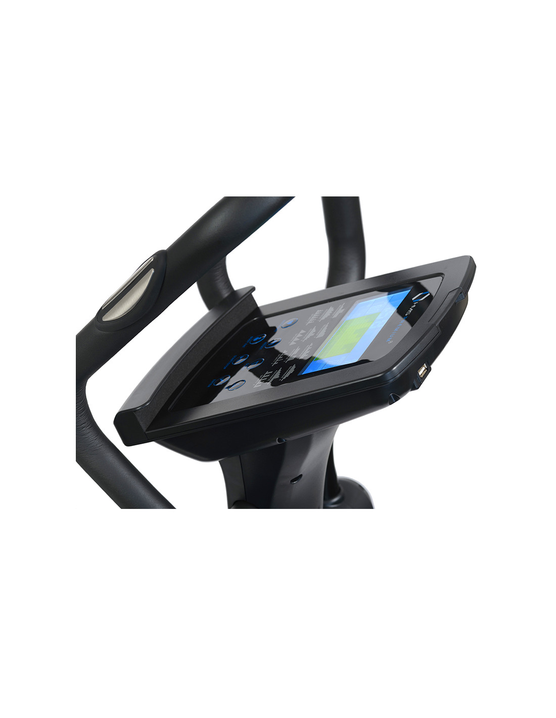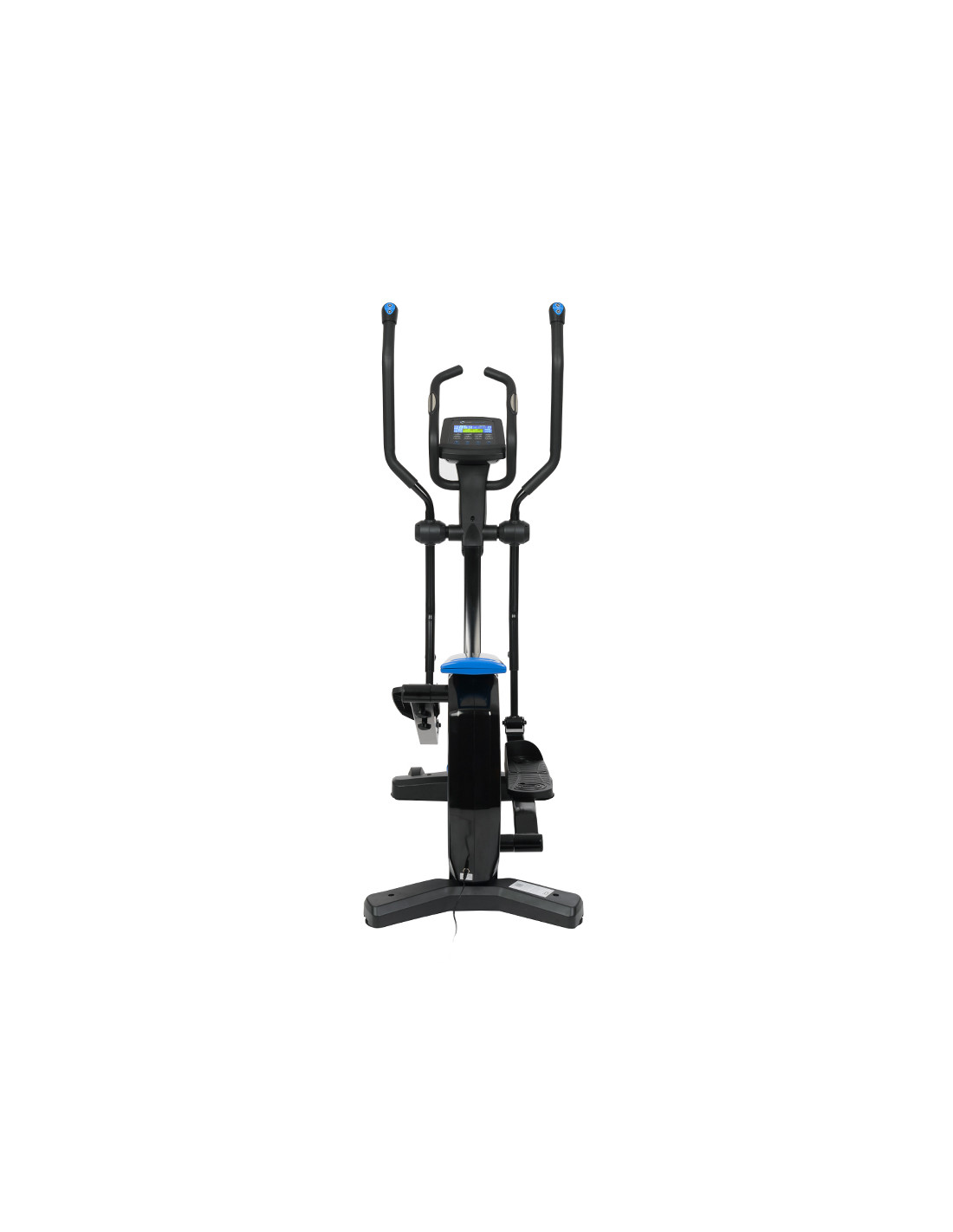 Das Gerät verfügt über die breiten (12 cm) und rutschfesten Pedale sowie die vertikale und horizontale Satteleinstellung. Mit dem Ziel, maximale Sicherheit zu gewährleisten, sind alle Handläufe mit einem speziellen rutschfesten Stoff bedeckt. Der Crosstrainer ist auch mit Bluetooth-Technologie, Handpuls-Sensoren zur präzisen Pulsmessung und einem USB-Anschluss ausgestattet.
