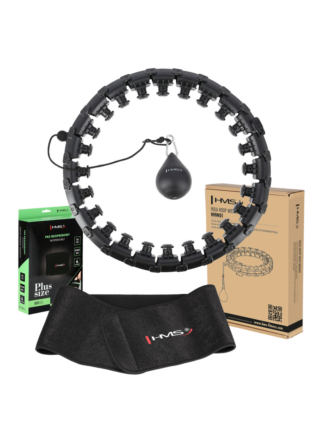 SET HULA-HOOP-REIFEN HHW12 BLACK MIT MASSAGENOPPEN UND SCHWERKRAFTBALL + BR163 BLACK