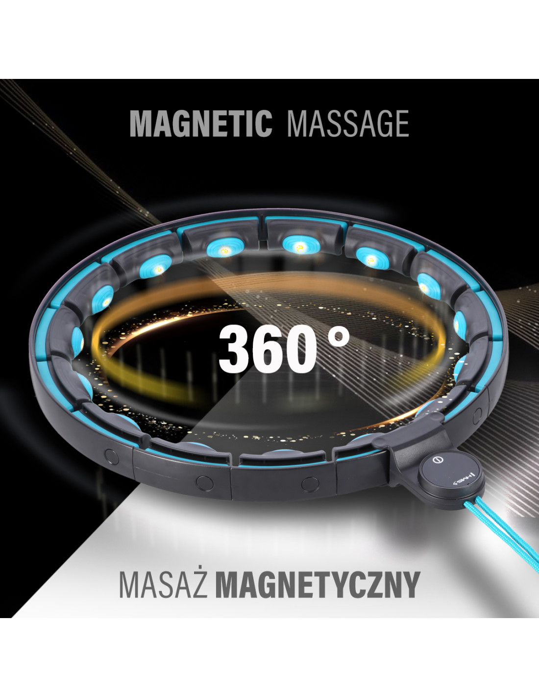 Der HHM17 enthält einen Magneten, der strategisch in jeder der Laschen platziert ist. Dadurch werden schon bei geringem Gebrauch des Hula-Hoop-Reifens die Stoffwechselprozesse des Körpers angeregt, was eine schnellere Fettverbrennung und bessere Trainingsergebnisse fördert. Der Magnet unterstützt außerdem den Fettabbau und beschleunigt das Erreichen einer schlanken Figur.