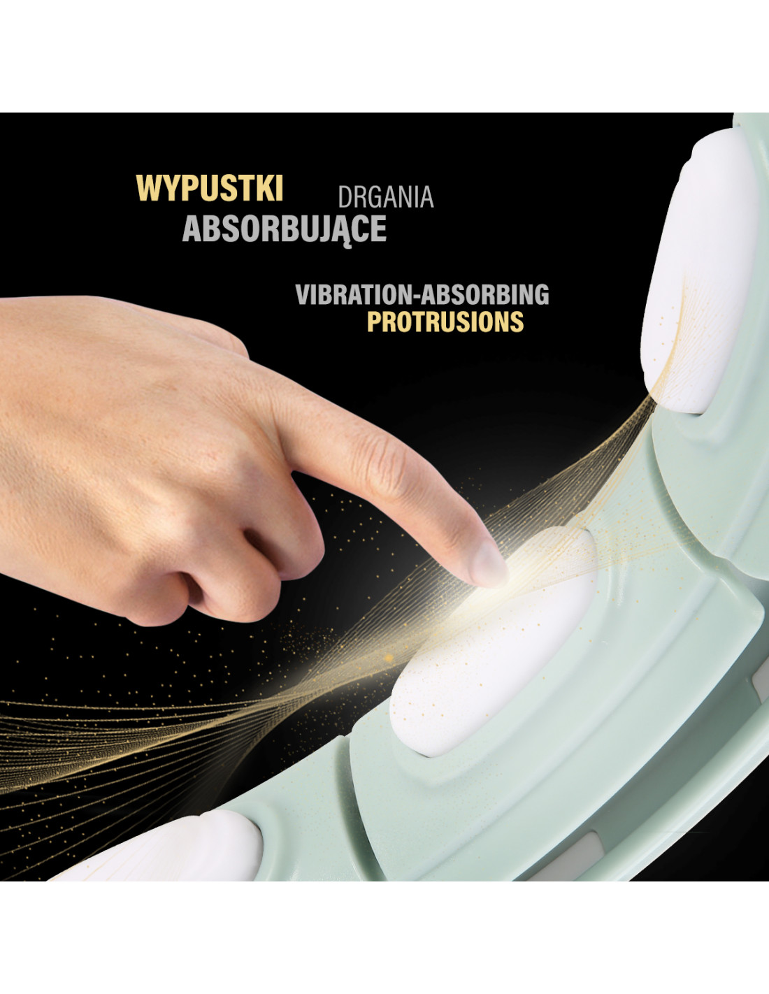 Durch die 360-Grad-Bewegung werden die Federn in den Köpfen, die entlang des gesamten Hula-Hoop-Reifens angebracht sind, Überlastungen effektiv dämpfen und sich dem Körper anpassen, wodurch ein zusätzlicher Massageeffekt erzielt und ein angenehmes Gefühl im Körper gewährleistet wird. Die dreidimensionale Massagetechnik regt die Muskeln schnell an. Die speziell entwickelten Massagepunkte absorbieren Stöße für ein komfortables Training. Stellen Sie die Intensität der Vibrationen durch die Drehgeschwindigkeit ein.