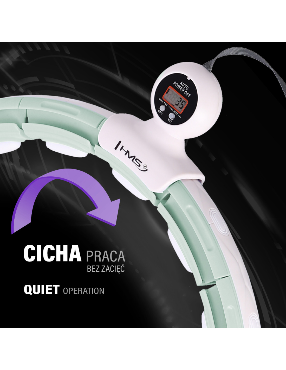 Hula-Hoop-Reifen HHM15 ist eine ausgezeichnete Lösung, um überschüssige Kilos im Bereich Bauch, Hüften und Po loszuwerden. Die Funktionsweise von HHM15 ist sehr einfach und intuitiv. Es handelt sich um eine geschlossene Schnalle mit einer Schiene und einem Schwerkraftball (Gewicht). Während kreisförmiger Hüftbewegungen tritt eine Zentrifugalkraft auf, die die Schwerkraftkugel entlang des Kreises bewegt und die Bauchmuskulatur und den Rumpf unter Spannung setzt.