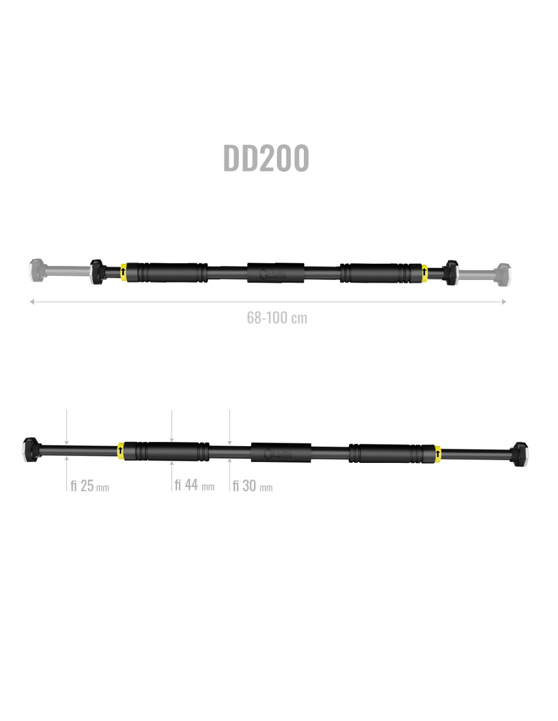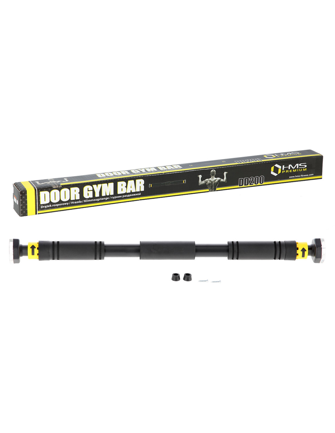 DD200 HMS PREMIUM – die Klimmzugstange, die aus robustem Stahl hergestellt ist. Das Produkt ist eine ideale Lösung, wenn man nicht so viel Platz für ein großes Heimfitnessstudio hat. Eine große Auswahl der Längenverstellung im Bereich von 68-100 cm ermöglicht es, problemlos den Platz für die Montage der Klimmzugstange zu finden.
