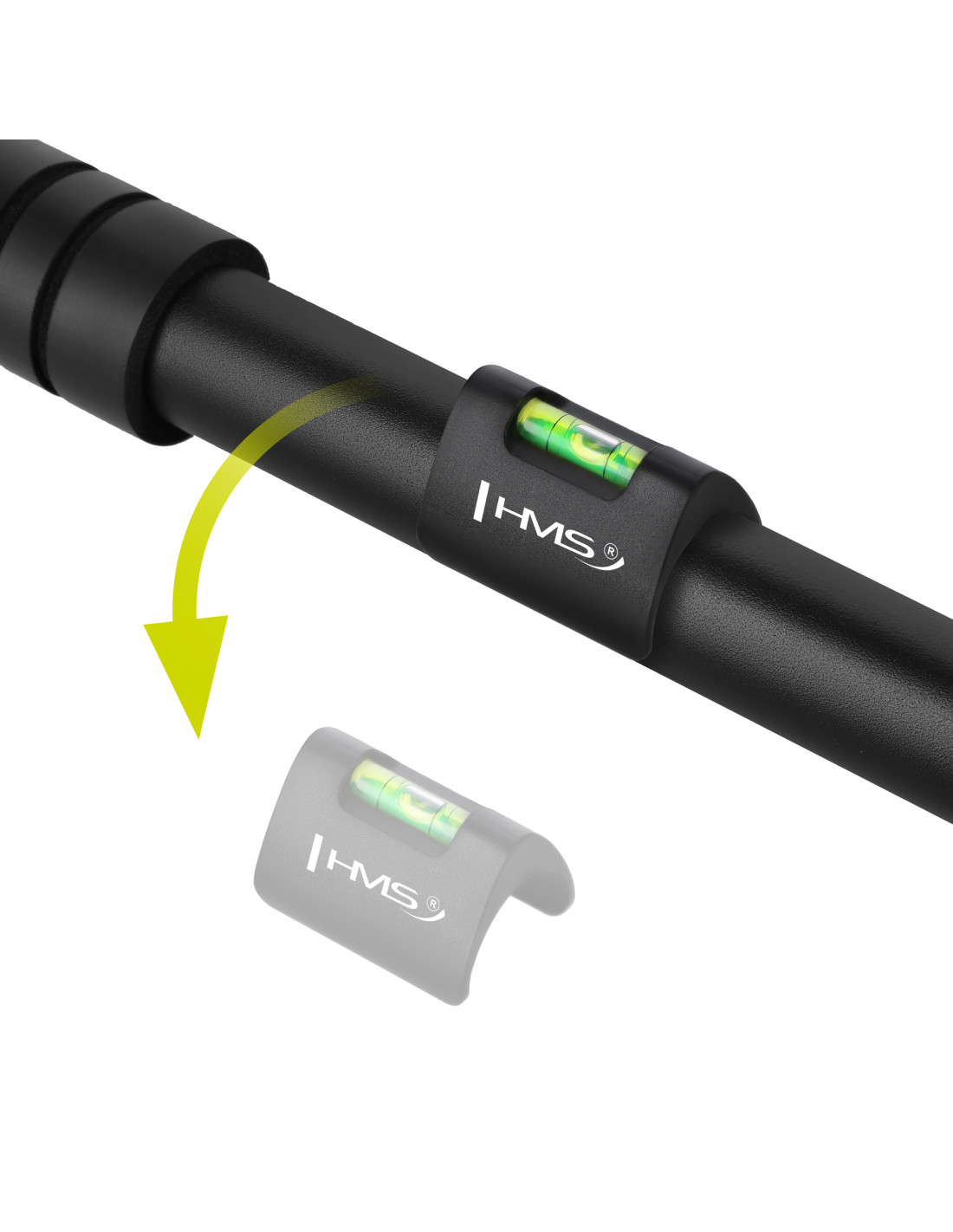- Eine integrierte Wasserwaage hilft, die Stange exakt waagerecht auszurichten.