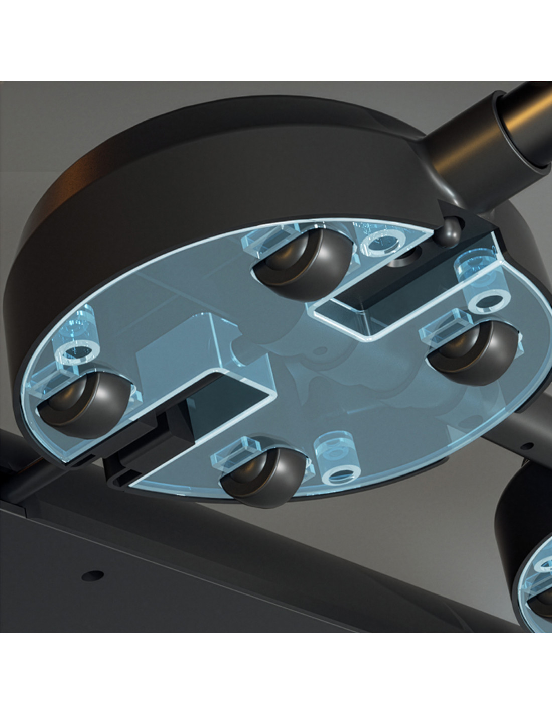 - Bodenschutz: runde Schaumstoffpads und rutschfeste Füße verhindern Verrutschen und Abrieb.