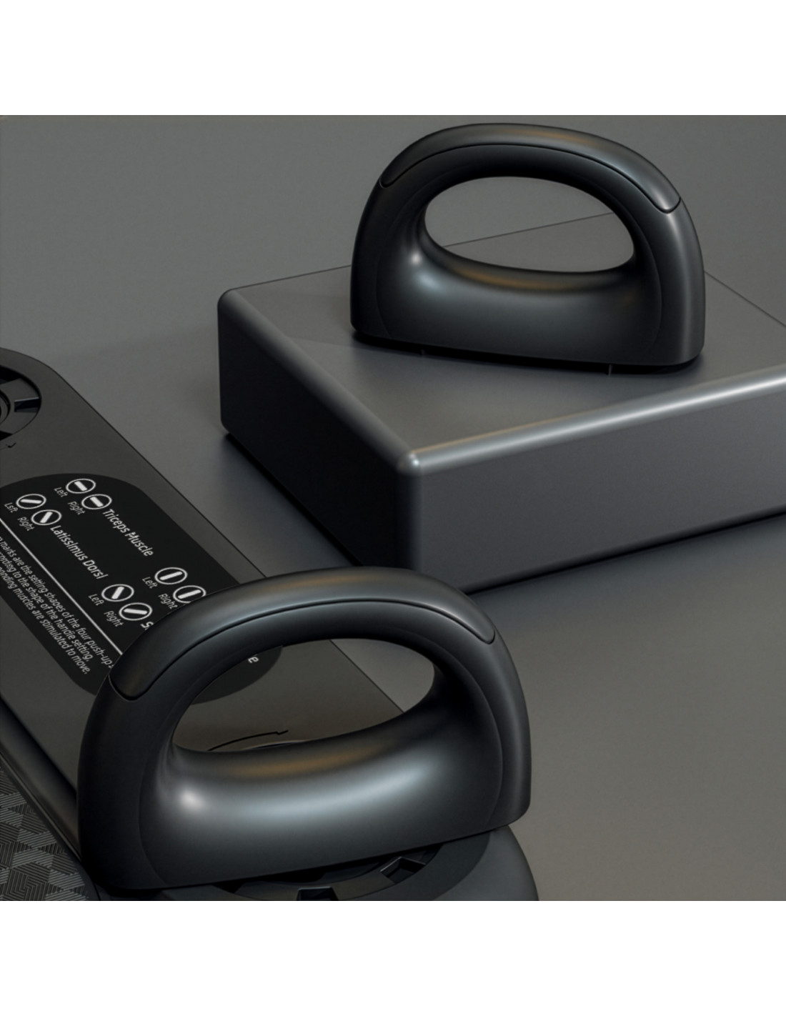 - Liegestütz-System: bewegliche, ergonomisch geformte Griffe mit mehreren Griffpositionen (eng, klassisch, breit, neutral) – bessere Aktivierung von Brust, Trizeps und Schultern.