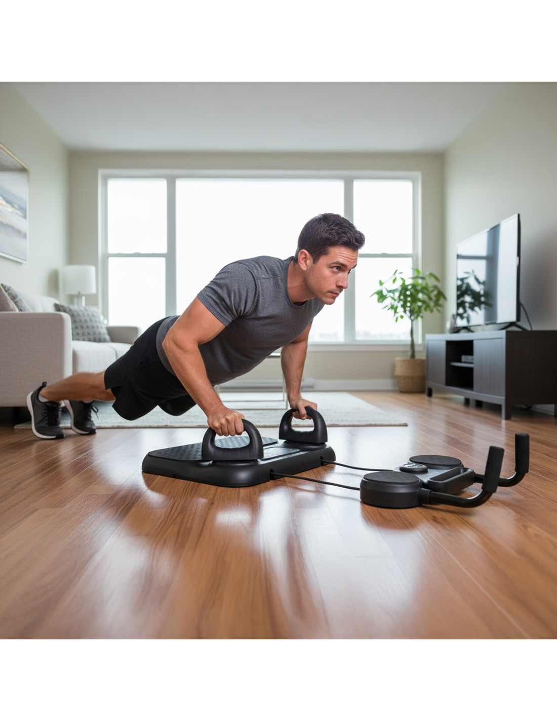 - Plank und Liegestütze in vielen Varianten – ergonomische, umsteckbare Griffe ermöglichen unterschiedliche Breiten und Griffwinkel, um Zielmuskelgruppen besser zu isolieren.