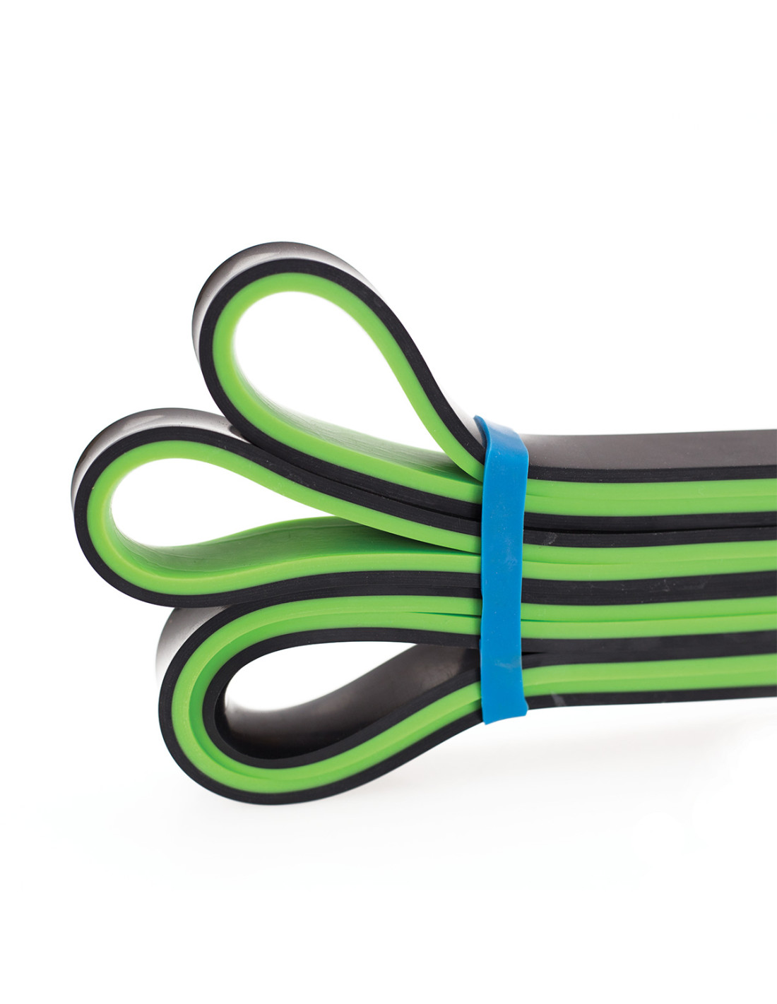 Die Widerstandsbänder bestehen aus dem festen und elastischen Latex, der den Bändern Lebensdauer garantiert und verursacht, dass einen regelmäßigen Widerstand während jedes Trainings entsteht.