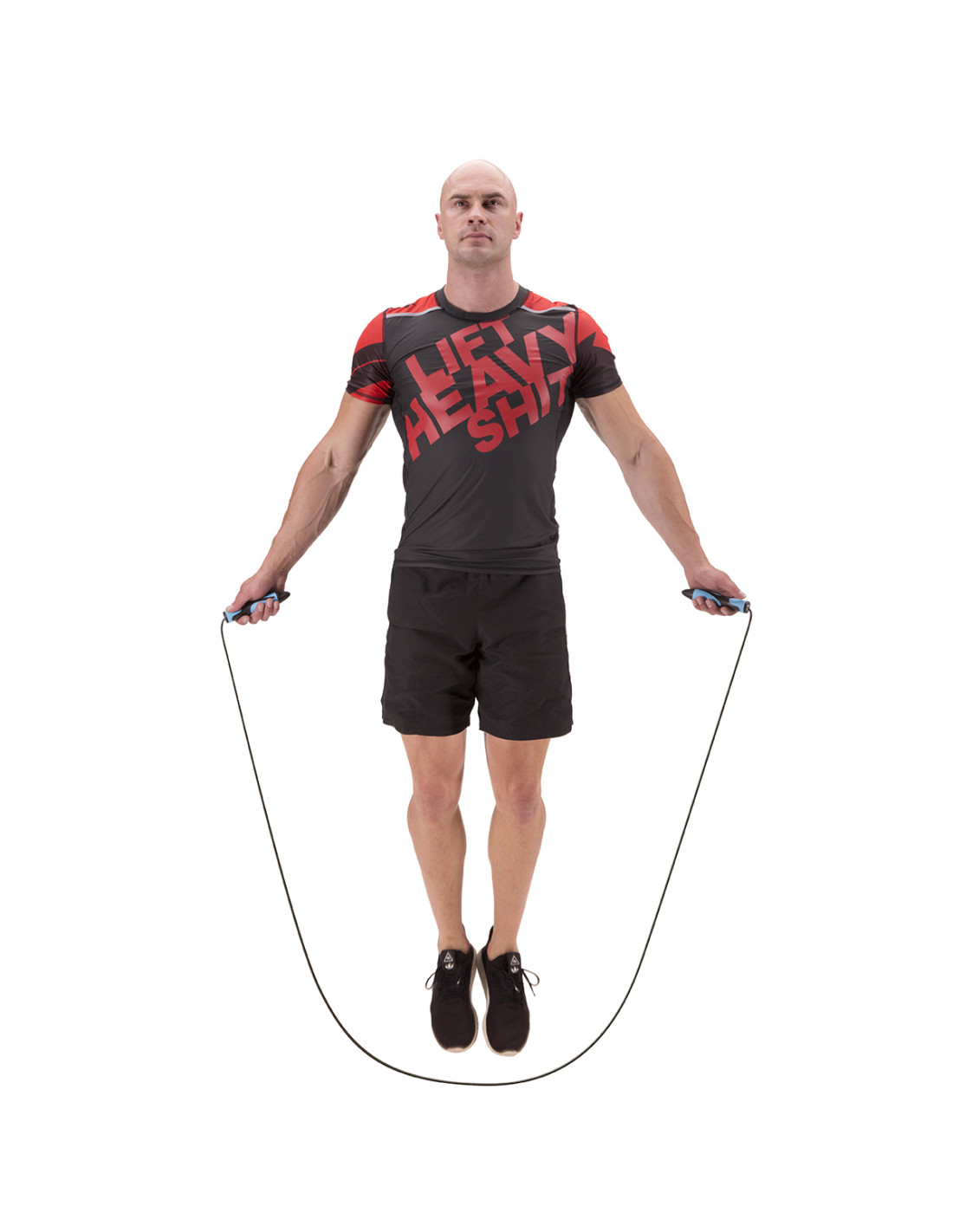 Das Seil mit der Länge von 2750 mm wurde aus Gummi hoher Qualität hergestellt. Dadurch kann man dieses Springseil lang und sorgenfrei benutzen. Die bequemen und ergonomischen Griffe liegen ideal in Ihren Händen und gewährleisten ein sicheres Greifen während des ganzen Trainings.