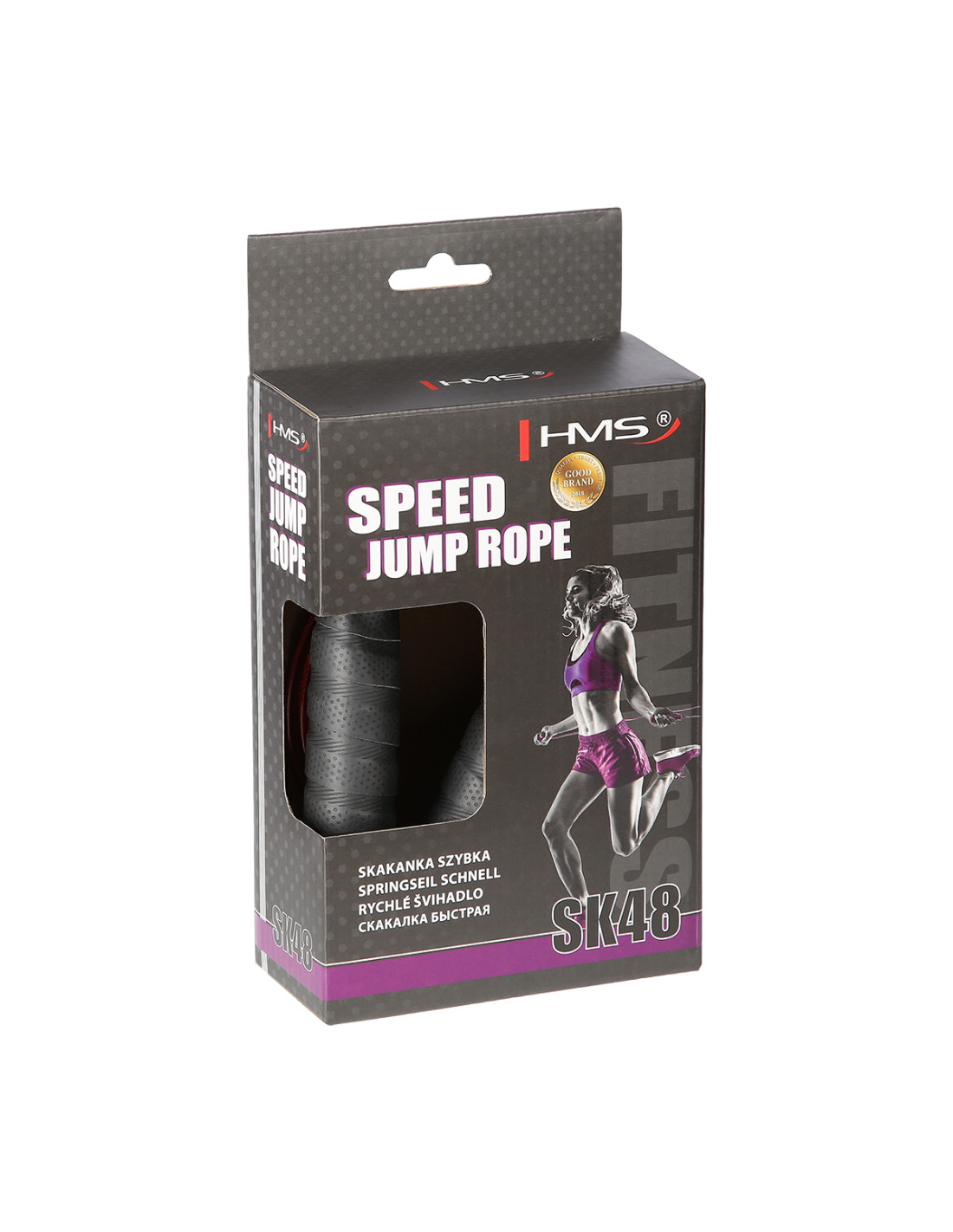 SK48 HMS, Springseil aus Aluminium, das für Ganzkörpertrainings geeignet ist. Es gewährleistet die Verbesserung der körperlichen Leistungsfähigkeit, der Fettverbrennung sowie Formung von Gesäß-, Oberschenkel- und Wadenmuskulatur.