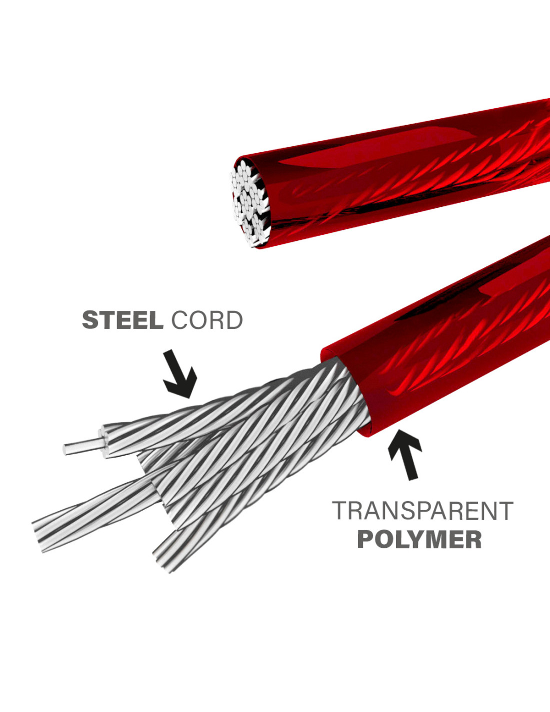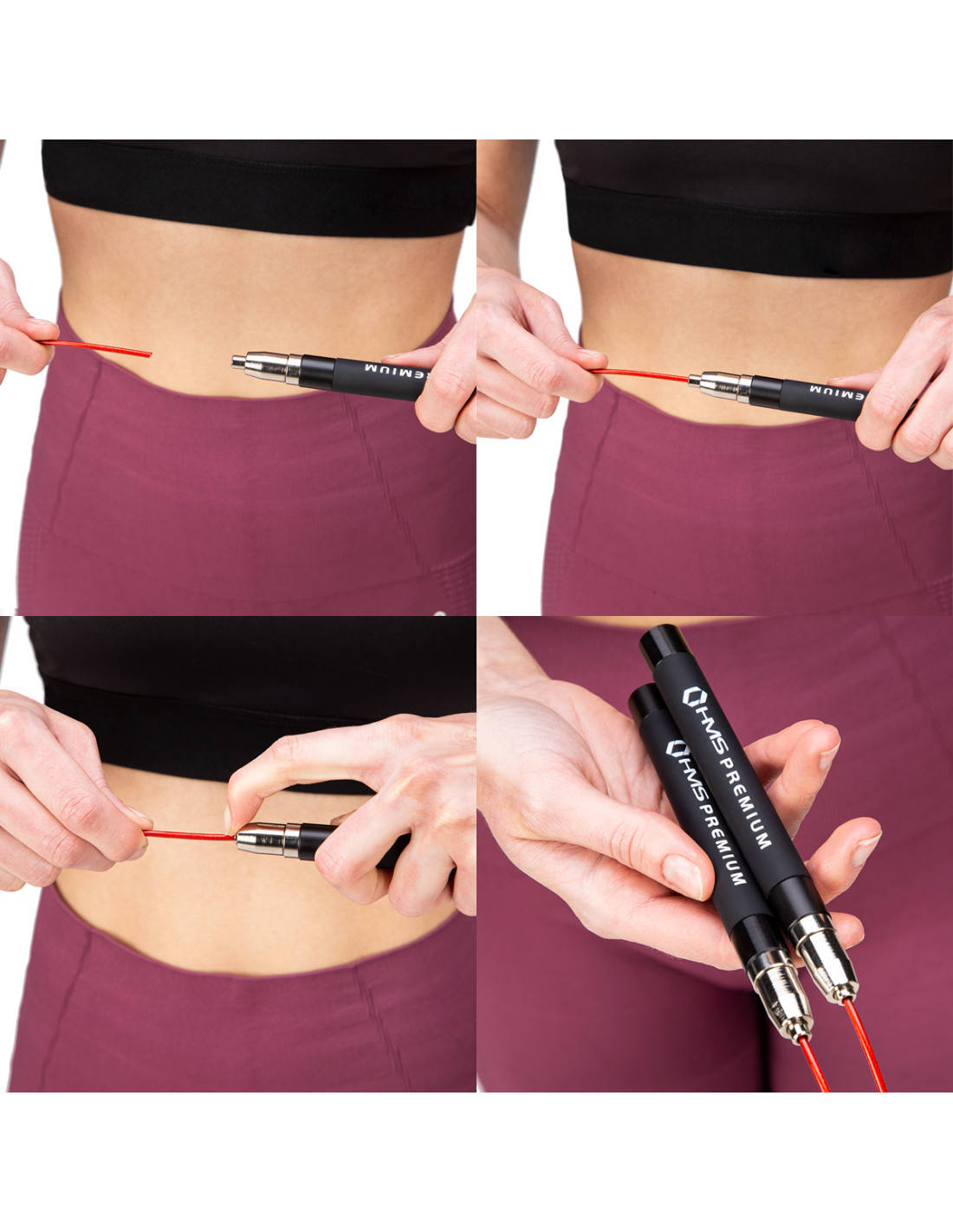 Seine innovative Konstruktion gewährleistet außergewöhnliche Geschwindigkeit und Präzision der Bewegungen bei den Übungen. Die Griffe des Springseils sind mit rotierenden Köpfen ausgestattet, die ein Verdrehen des Seils während des Trainings verhindern. Das Gerät ist aus den hochwertigsten Stoffen hergestellt.