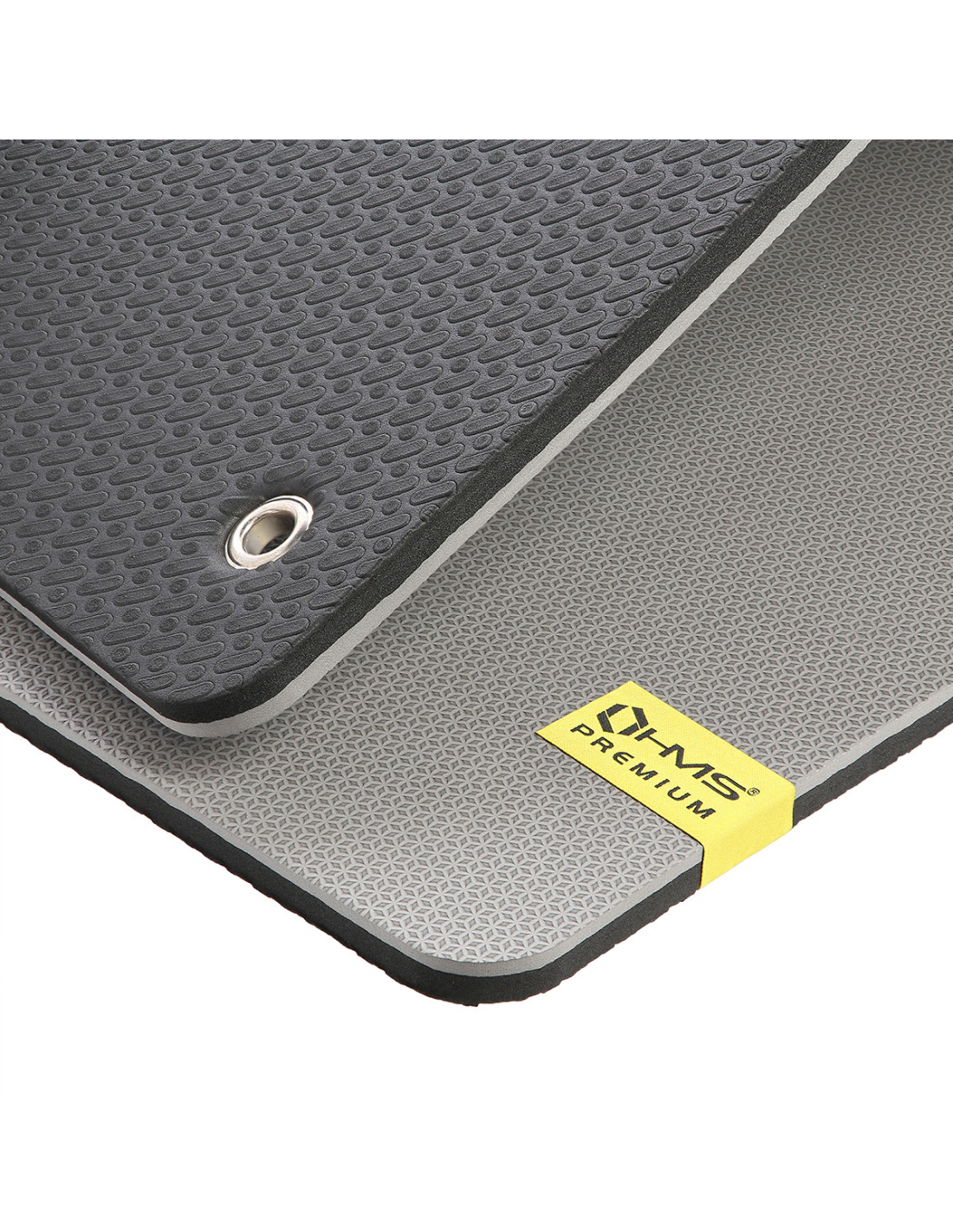 HELLGRAU-SCHWARZ FITNESSMATTE MIT DEN ÖSEN 120*60 CM EVA 15 MM HMS PREMIUM