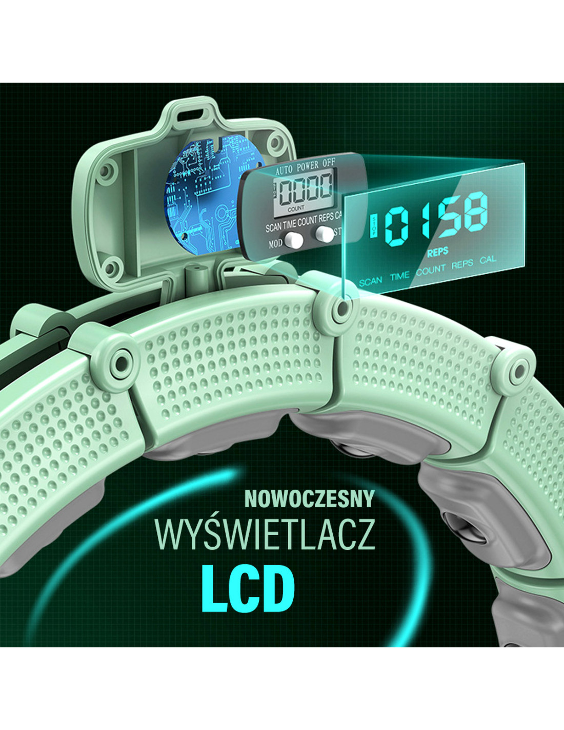 HULA-HOOP-REIFEN GREEN MIT MAGNETEN UND SCHWERKRAFTBALL + ZÄHLER HMS