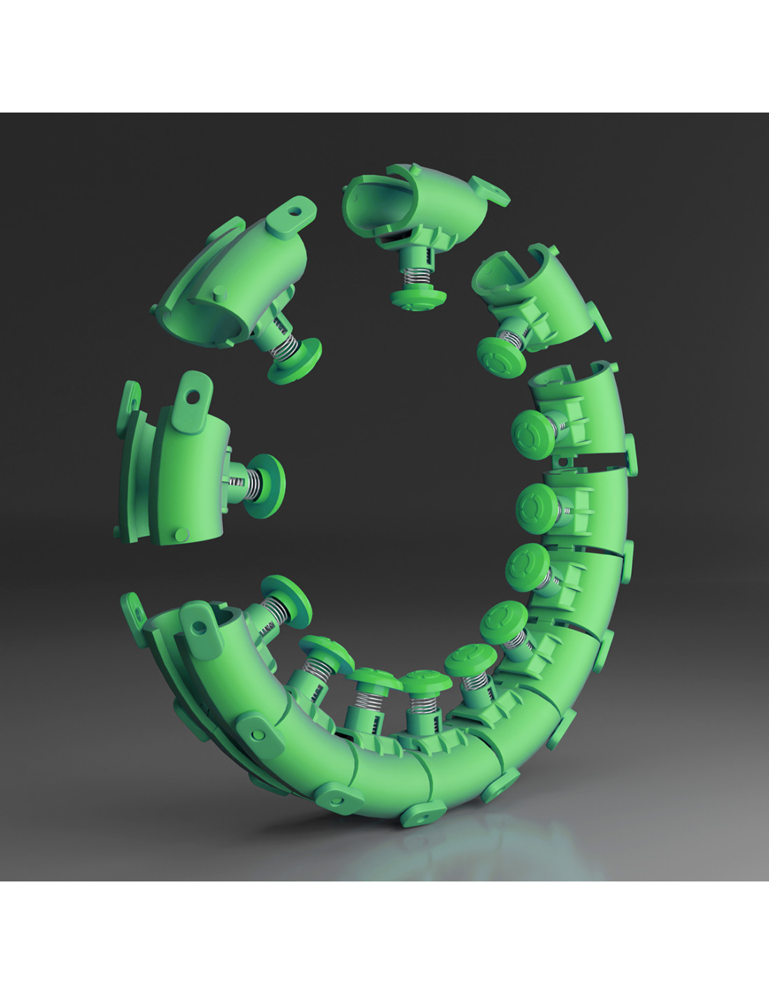 Dank der 360-Grad-Bewegung dämpfen die Federn, die sich in Hauptteilen des ganzen Kreises befinden, die Stöße. Sie passen sich an den Körper an. Dies verursacht zusätzlich einen Massage-Effekt und gewährleistet ein angenehmes Gefühl für den Körper. Diese 3D-Technik der Massage regt Muskeln schnell zum Wachstum an. Die eingebauten Massagenoppen mit einem speziell entwickelten Design sind stoßdämpfend für ein bequemes Training. Man kann die Intensität der Vibrationen dank der schnelleren Bewegung erhöhen.