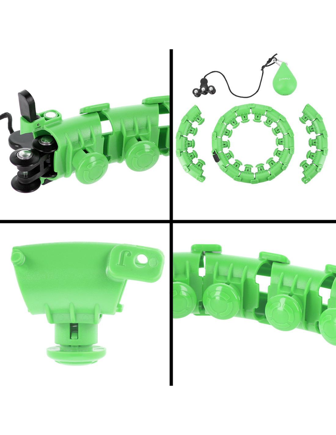 Man kann schnell und bequem die Größe des Reifens verkleinern oder vergrößern. Es reicht nur Elemente entsprechend den Bedürfnissen zu entfernen oder hinzuzufügen. HHW01 besitzt insgesamt 24 Elemente. Die Größe kann man zwischen 14 und 24 Elementen einstellen. Der Taillenumfang kann dementsprechend von 48 cm bis zum 106,5 cm betragen.