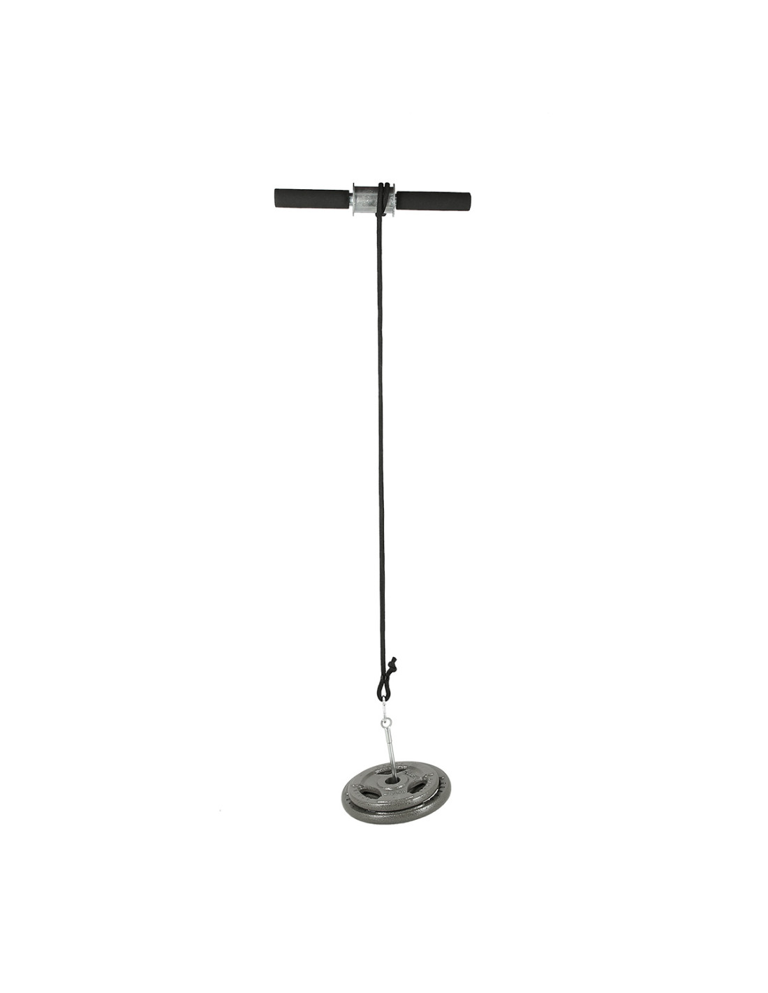 Ein bequemer Karabinerhaken am Ende des Seils ermöglicht es, einfach und problemlos die Belastung zu ändern. Die Griffe sind mit Schaumstoff bedeckt, was das sichere Greifen gewährleistet und das Abrutschen der Hände verhindert. Während des Ein- und Ausrollens des Seils mit Gewichten arbeiten die Unterarmmuskeln in vollem Bewegungsbereich.