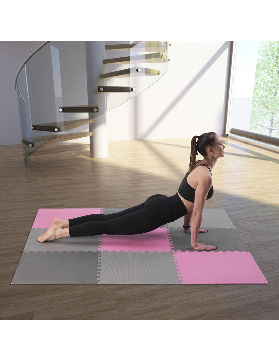 Die Puzzlematte ermöglicht es, eine Gruppe der Übungen aus dem Fitnessbereich zu Hause zu machen, wie z. B. Yoga, Krafttrainings oder Trainings mit dem eigenen Körpergewicht, Trainings mit Kurz- und Langhanteln sowie mit einem Crosstrainer. Man kann sie auch bei uneingeschränktem Spaß im Familienkreis oder bei der Möbelmontage benutzen. Diese Matte erhöht den Benutzungskomfort. Sie schützt nicht nur den Benutzer vor Verletzungen, sondern auch den Boden vor Beschädigungen. Sie ist auch eine schalldämpfende Matte. Sie reduziert die durch Übungen verursachten Trainingsgeräusche. Mit dem „Puzzle“-System kann die Matte beliebig zusammengefügt werden. Tiefe Verzahnungen gewährleisten die Stabilität der aus mehreren Elementen bestehenden Struktur.