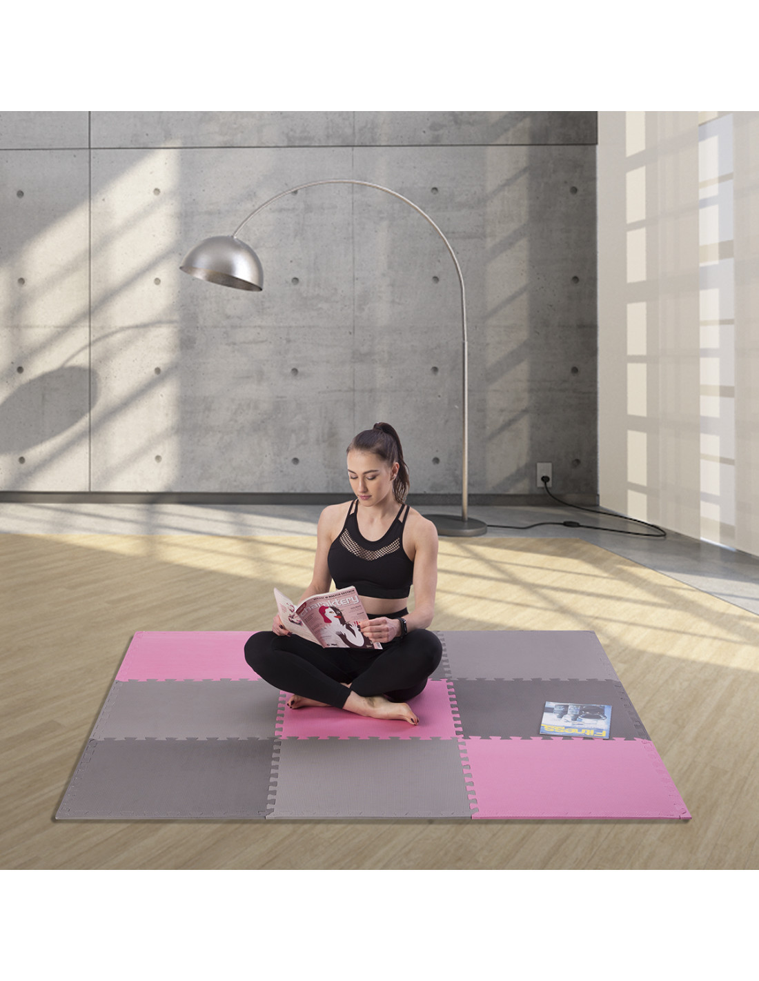PUZZLE-MATTE UNTERLEGMATTE ROSA-GRAU 9 ELEMENTE 10MM