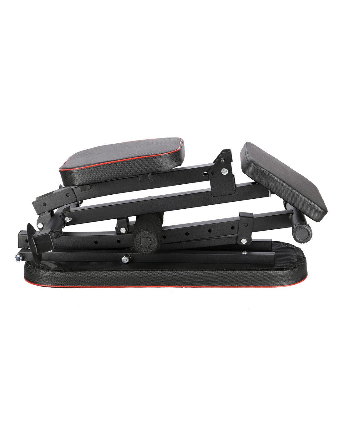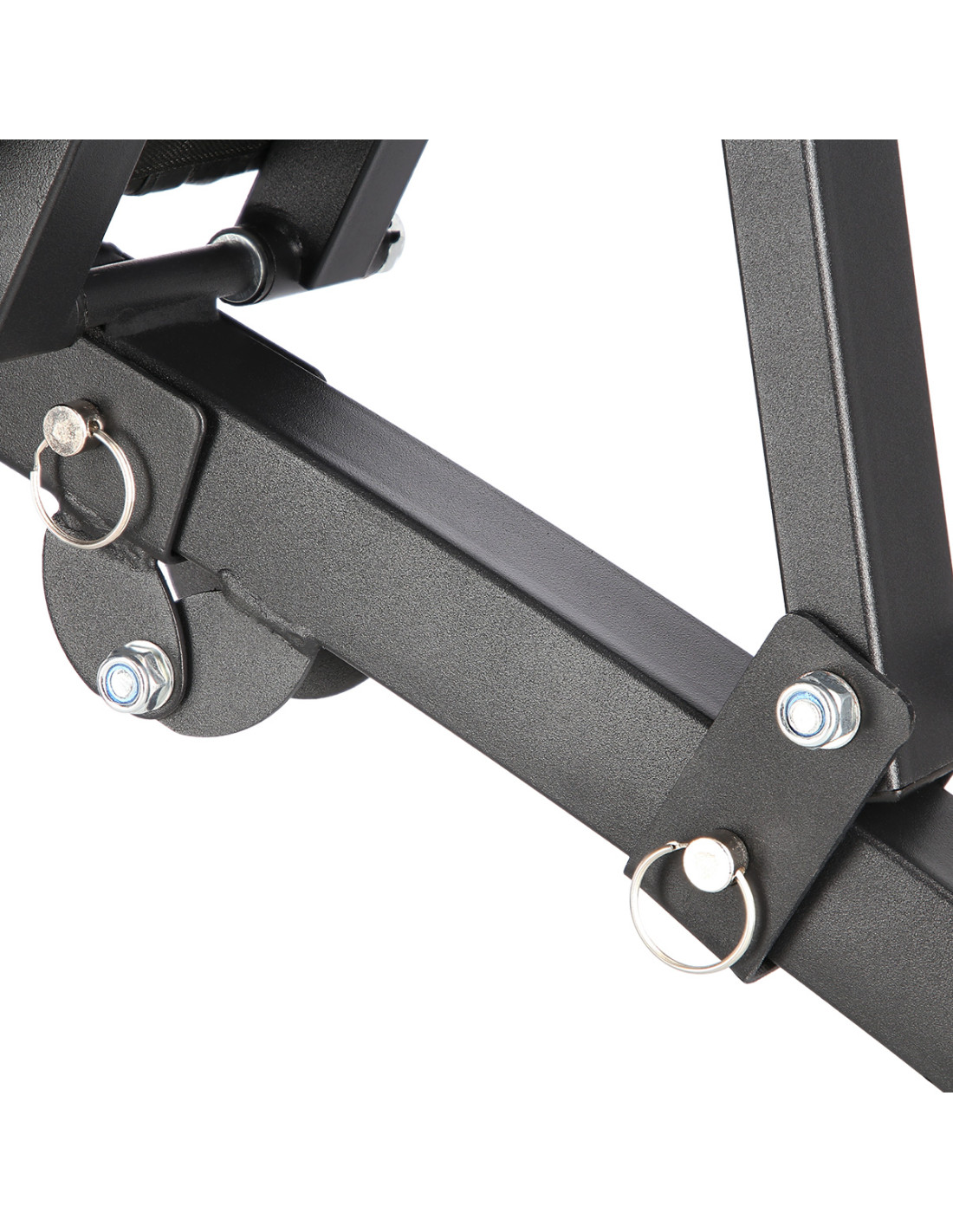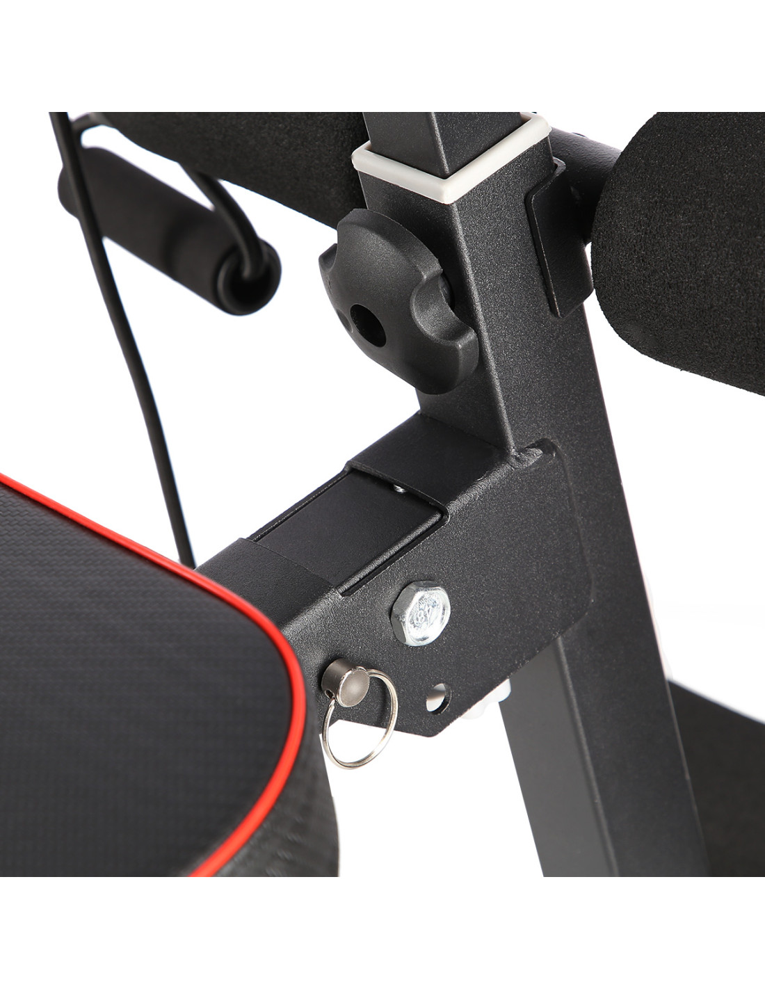 Die Trainingsbank steht oft auf Fußbodenpaneele oder anderen rutschigen Oberflächen zu Hause. Aus diesem Grund ist das Modell L8021 mit zwei großen Gummi-Endkappen auf der Vorderseite des Ständers ausgestattet, die Rückseite wird durch Gummi-Endkappe geschützt, die ebenfalls gerillt sind, um mehr Reibung zu bieten. Alle überstehenden Schrauben sind mit speziellen Endkappen versehen.
