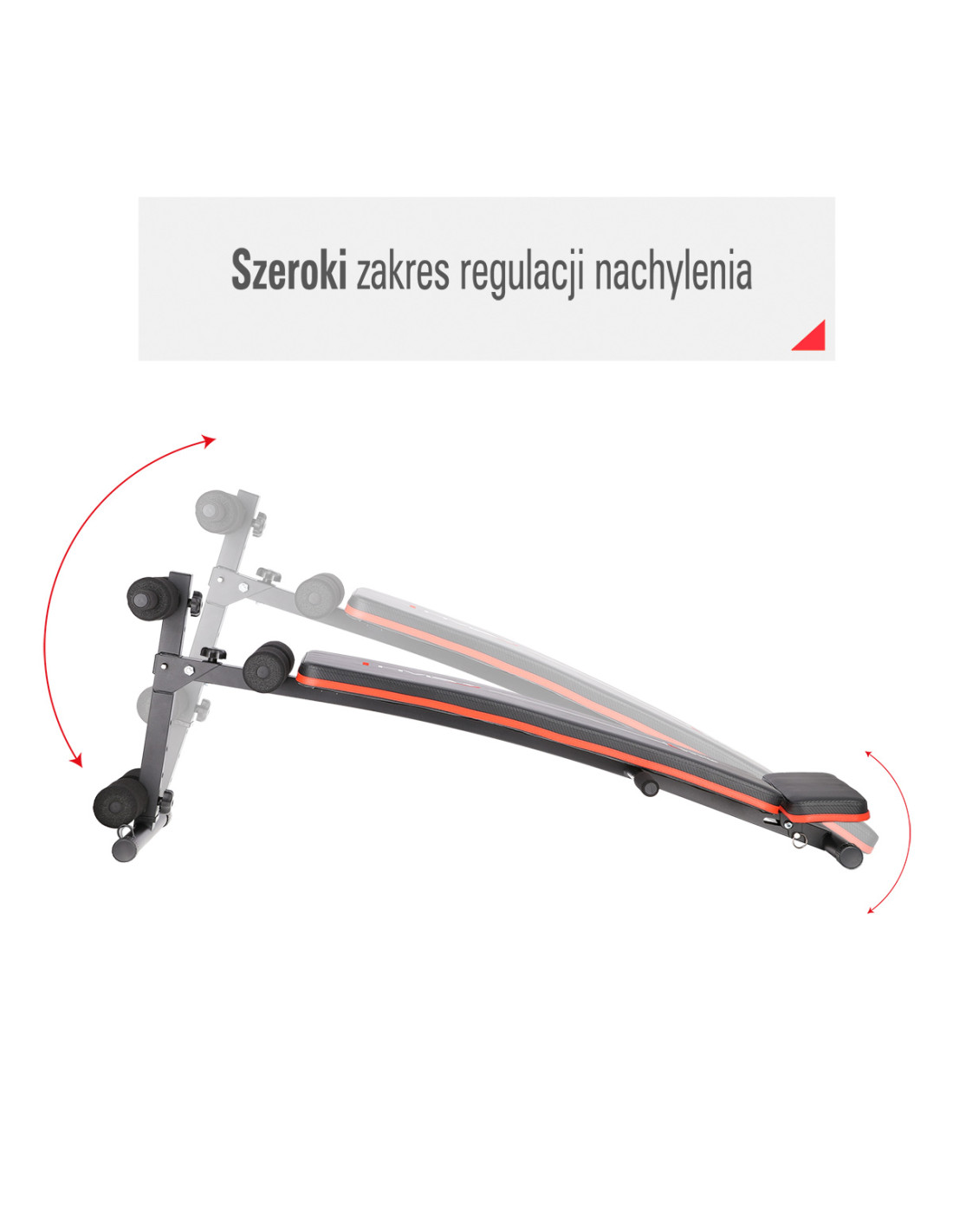 Zu einer Basis-Übung mit der Trainingsbank L1110 gehören Rumpfbeugen. Außerdem haben Sie die Möglichkeit, auch andere Übungen mit diesem Produkt zu machen wie z. B. das Beugen der Arme (sog. Liegestütze). Zwei Paare der Liegestützgriffe ermöglichen es Ihnen, diese Übung auf einer mehr oder weniger intensiven Weise durchzuführen.