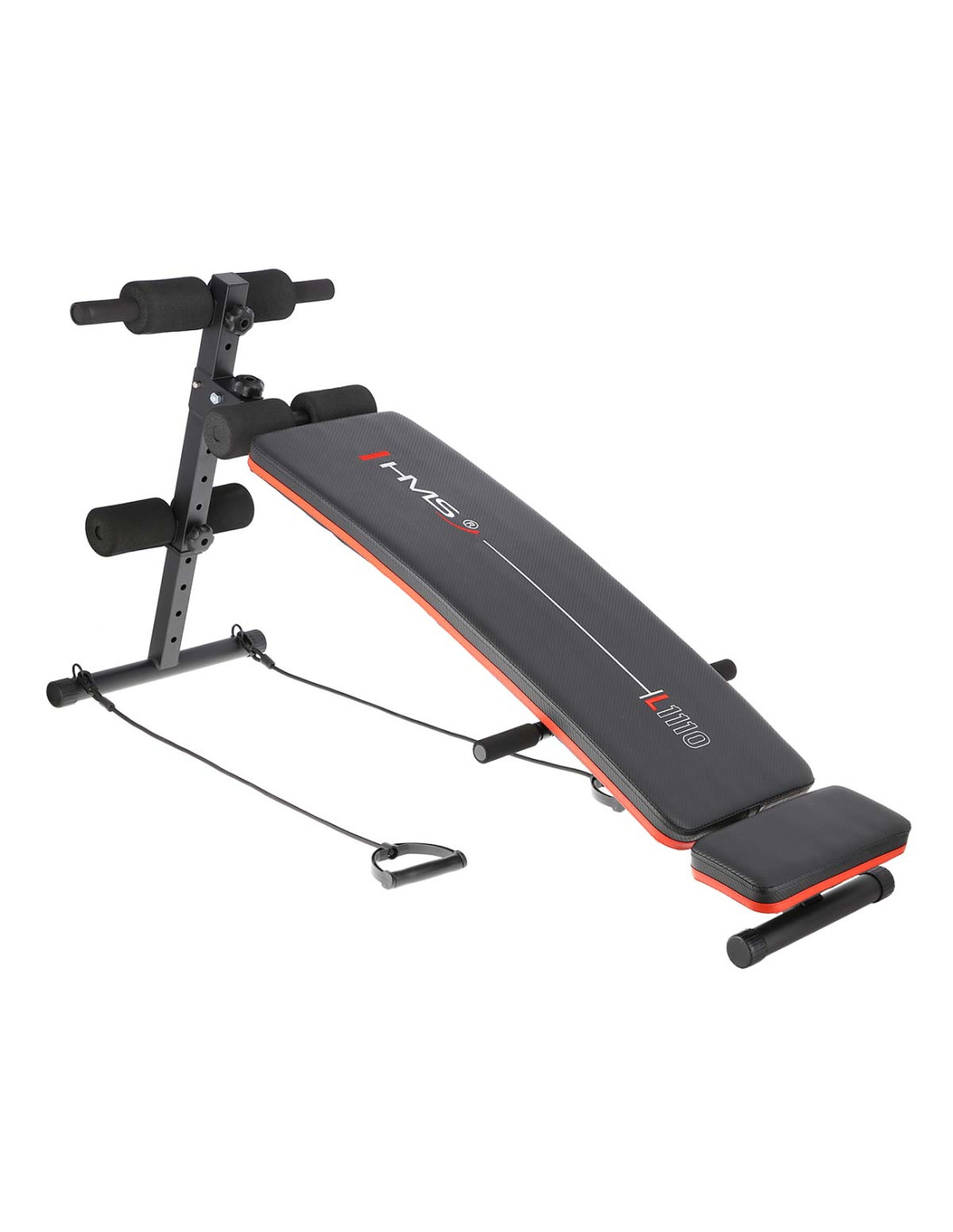 L1110 HMS ist eine Schrägbank, deren Hauptanwendung sog. Rumpfbeugen (Sit-ups) sind.