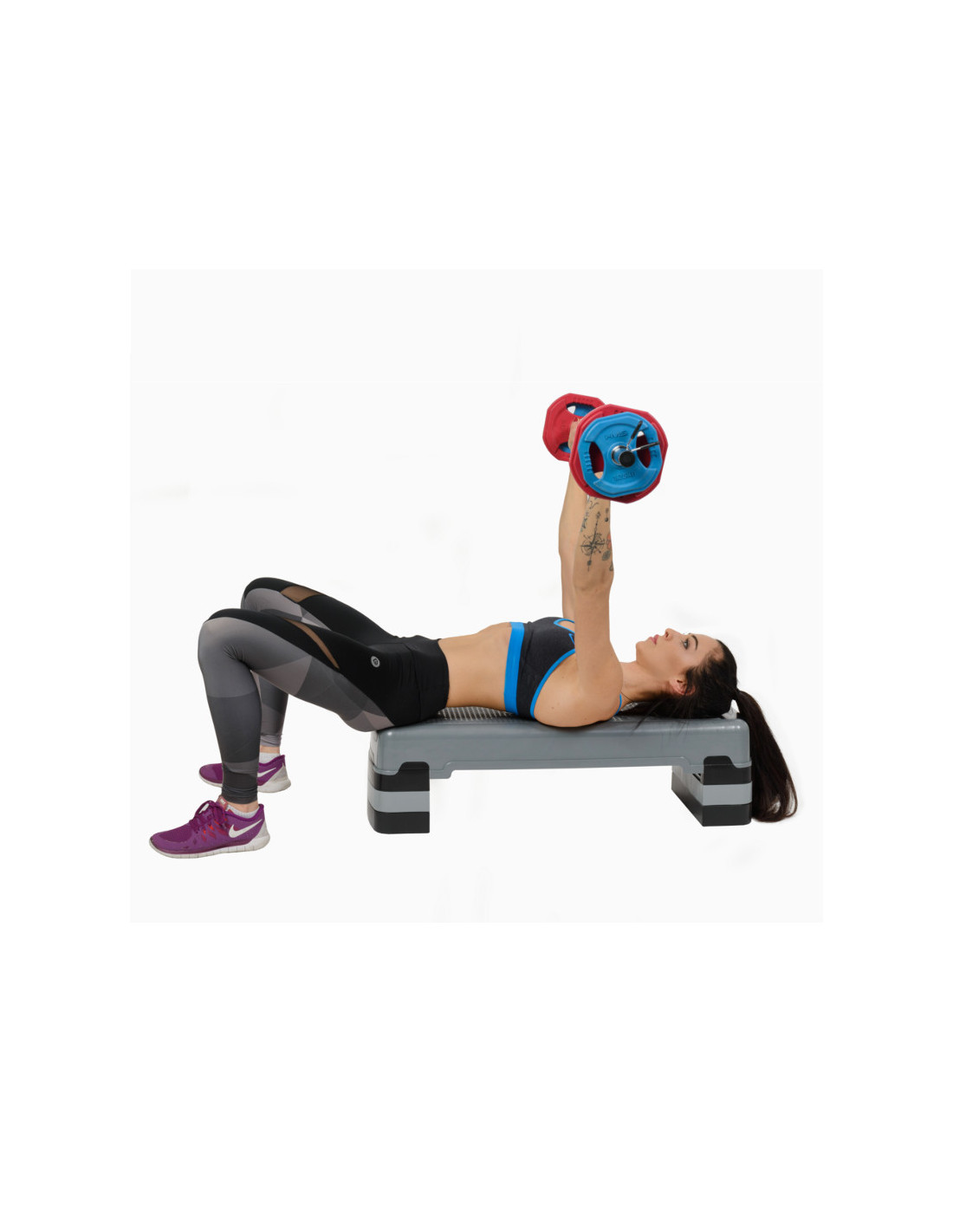 Die Langstange und Hantelscheiben wurden aus verchromtem Stahl hoher Qualität hergestellt, was ungewöhnliche Lebensdauer dieses Produkts gewährleistet. Sie ist mit Schaumstoff bedeckt und er fühlt sich gut an. Daher liegt sie gut in der Hand und rutscht sich nicht während des Trainings. Dieser Schaumstoff verhindert die Blasen und Schürfwunden. Die Hantelscheiben sind mit buntem Gummi bedeckt. Die Farbe der Hantelscheiben hängt vom Gewicht ab. Das Gummi dämpft sehr gut alle Schläge. Beim Fall wird der Boden nicht beschädigt, wie auch selbst diese Langhantel. Was wichtig ist, haben die Hantelscheiben eine hexagonale Form, die optimal für Training-Pump-Übungen ist. Beim Abwurf oder Ablegen der Langhantel vermeidet ihre spezielle Form das unerwünschte Drehen. Die im Set enthaltenen Verschlüsse ermöglichen es Ihnen, Hantelscheiben entsprechend fest zu drücken und an der entsprechenden Stelle zu halten, unabhängig von der durchgeführten Übung.
