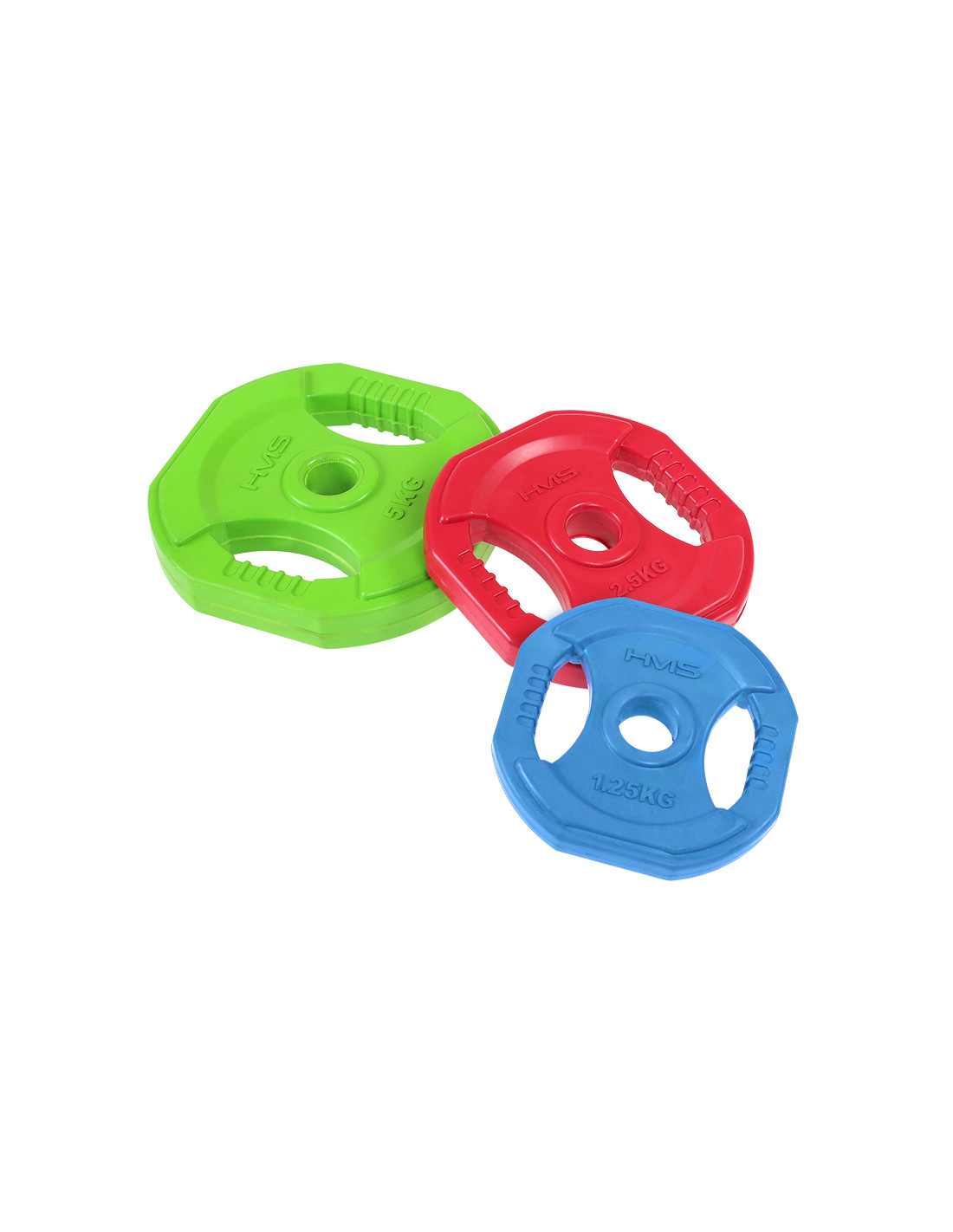 - Gewicht: 2 x 1,25 kg, 2 x 2,5 kg, 2 x 5 kg