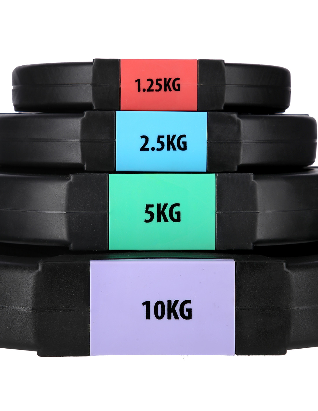 - Anzahl der Belastungen im Set: 2x 1.25 kg / 2x 2.5 kg / 2x 5 kg / 2x 10 kg