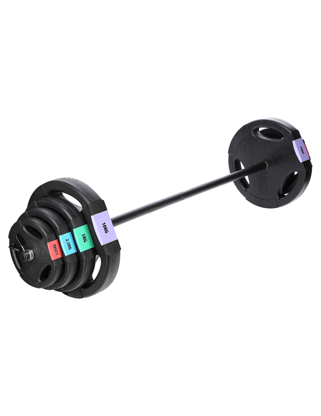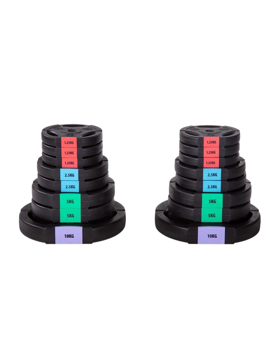 - Anzahl der Belastungen im Set: 6x 1.25 kg / 4x 2.5 kg / 4x 5 kg / 2x 10 kg
