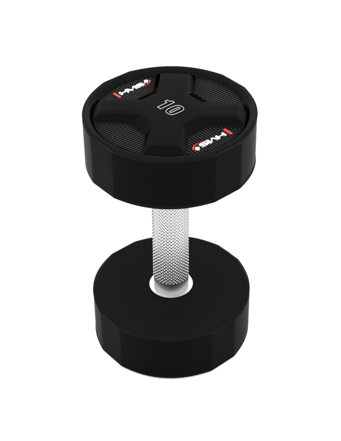 Jede HPC-Hantel ist mit einem speziell entwickelten Griff mit rutschfester Oberfläche für einen sicheren und bequemen Halt ausgestattet. Der gerändelte Griff aus verchromtem Stahl verhindert ein Abrutschen der Hände und erhöht die Sicherheit und den Komfort beim Training.