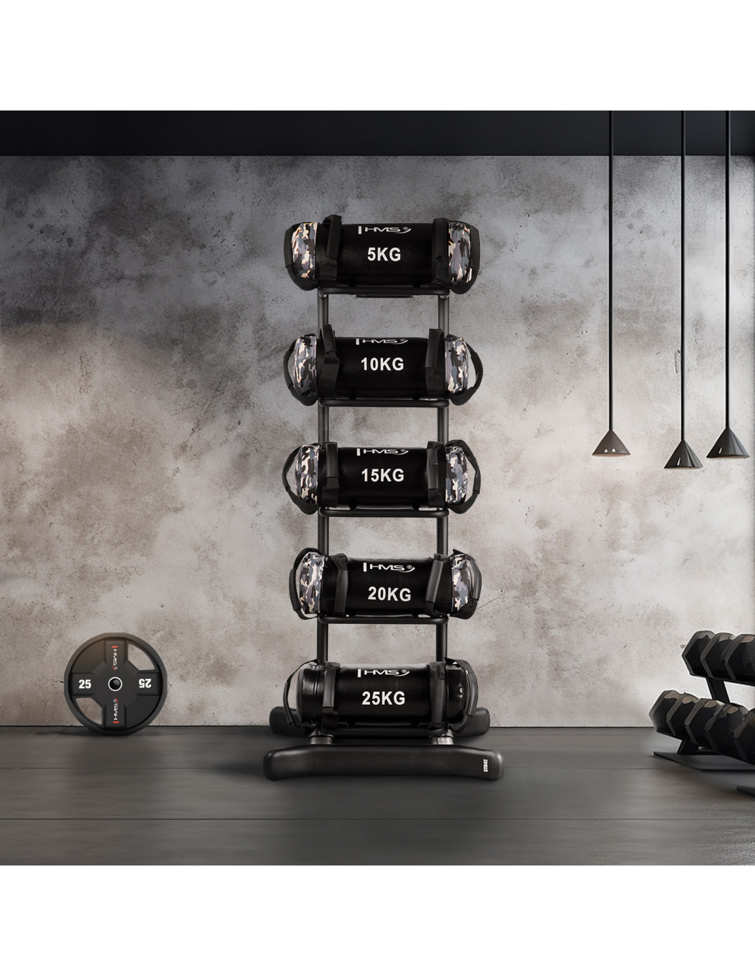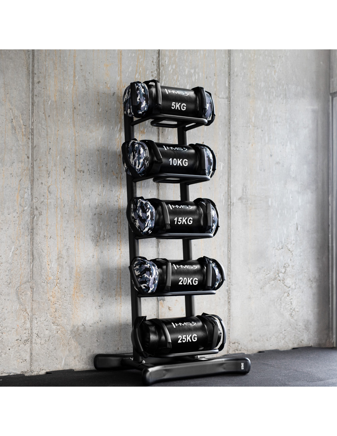 Dank seines vertikalen Designs ermöglicht Ihnen der STR42 die übersichtliche und leicht zugängliche Aufbewahrung Ihrer Kraftsäcke. Anstatt die Ausrüstung auf dem Boden oder an zufälligen Orten zu stapeln, haben Sie alles in Reichweite. Die maximale Tragfähigkeit von 250 kg garantiert Stabilität und Sicherheit, auch bei intensiver Nutzung.