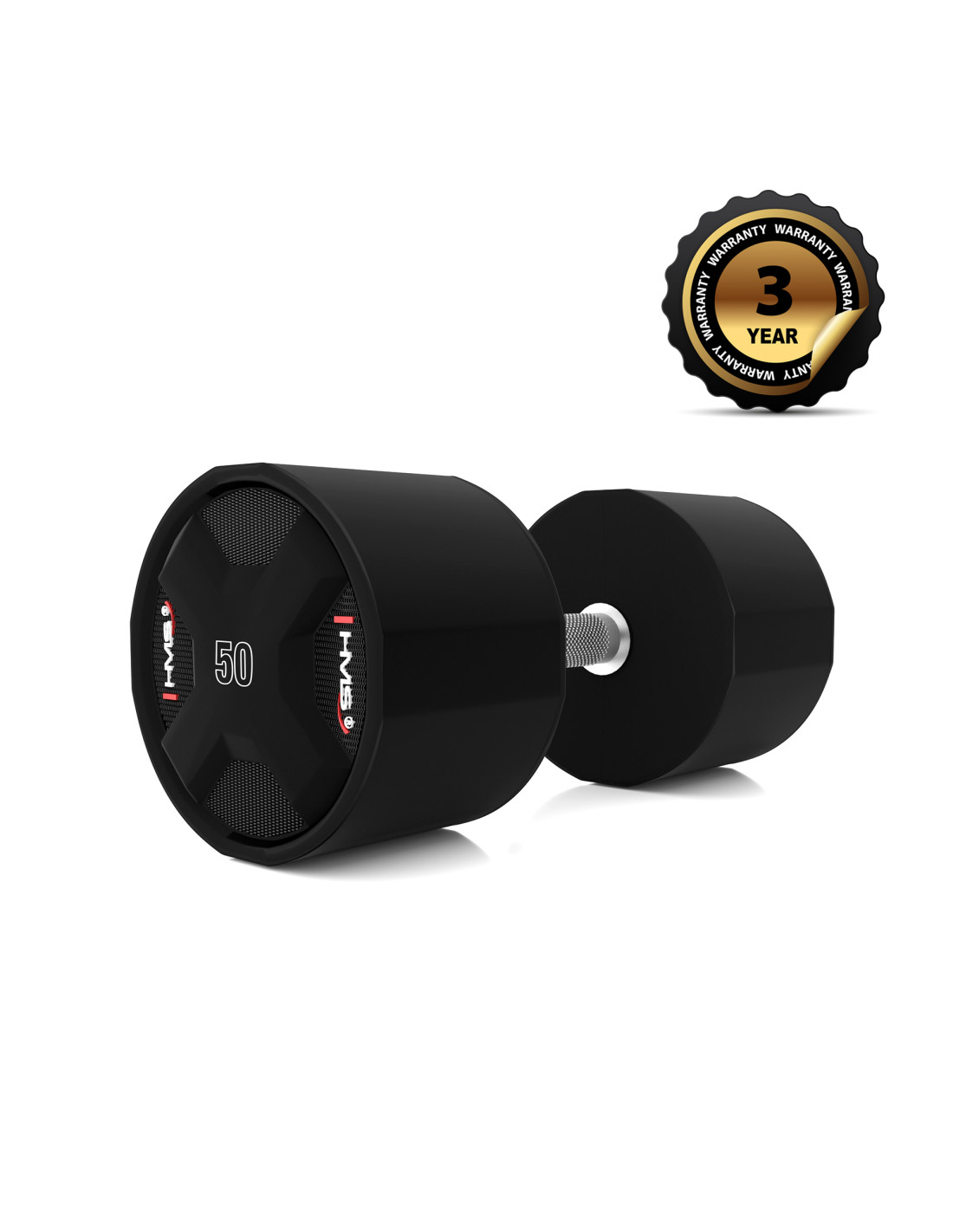 Jede HPC-Hantel ist mit einem speziell entwickelten Griff mit rutschfester Oberfläche für einen sicheren und bequemen Halt ausgestattet. Der gerändelte Griff aus verchromtem Stahl verhindert ein Abrutschen der Hände und erhöht die Sicherheit und den Komfort beim Training.