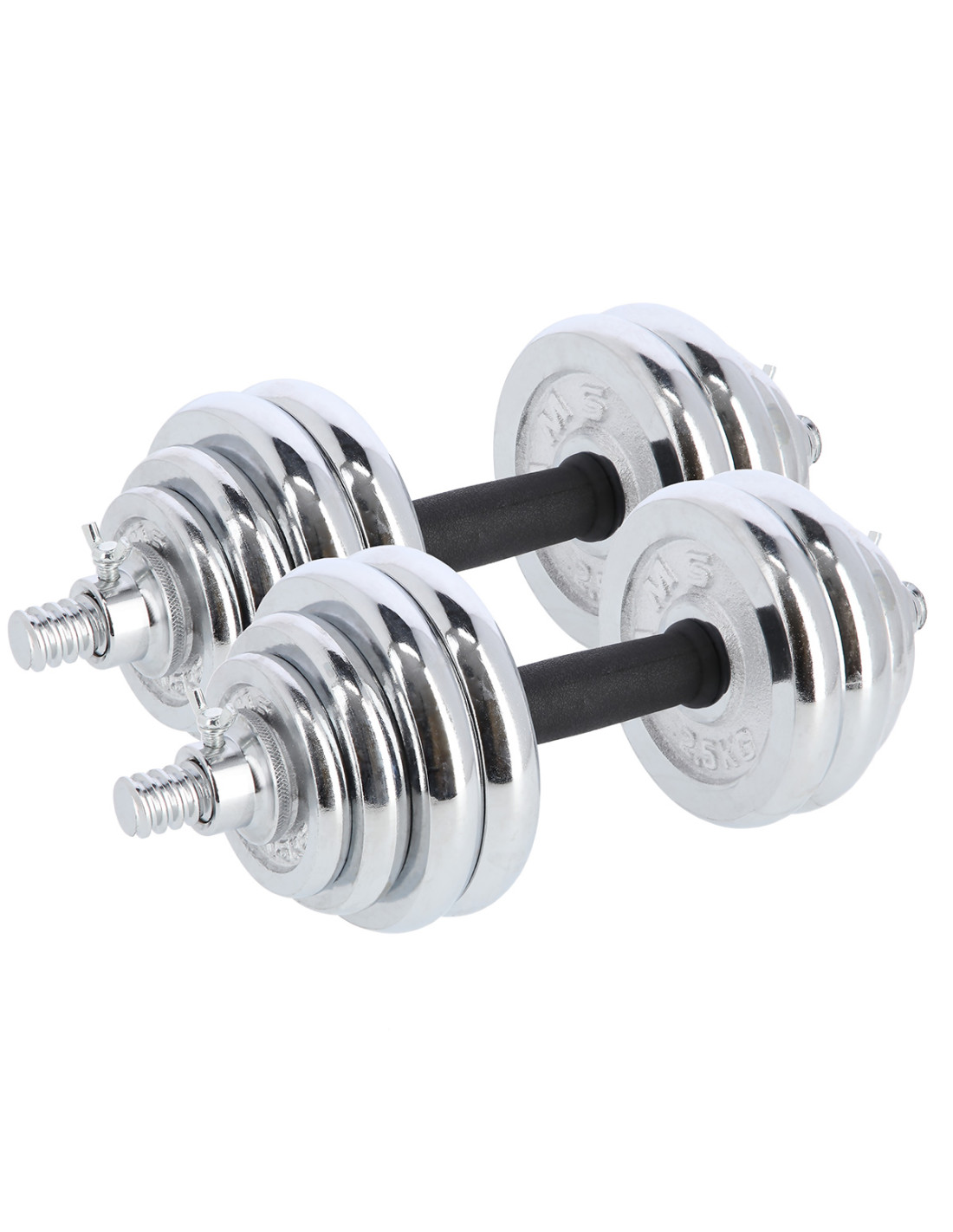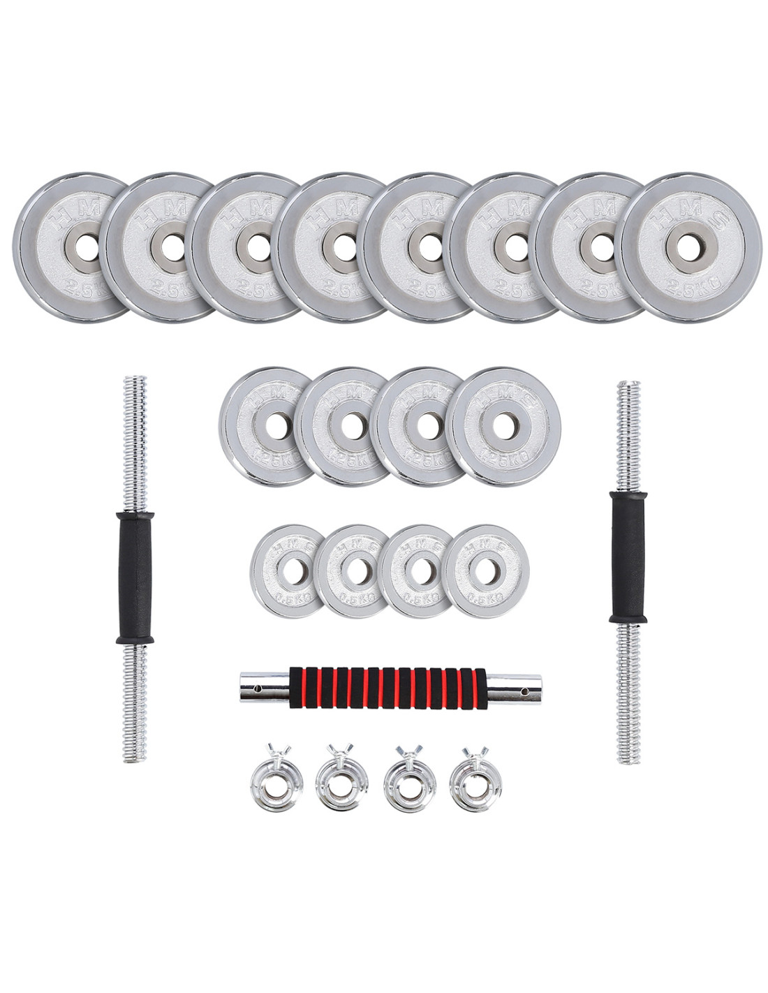 Die Kurzhanteln mit austauschbaren Hantelscheiben gehören zu einem klassischen und unbedingten Element jedes Heim-Fitnessstudios. Dieses Set STC30 HMS soll in Ihrem Fitnessstudio nicht fehlen, d.h. das Set mit zwei Kurzhanteln aus verchromtem Stahl. Sie können diese Kurzhanteln verbinden und im Endeffekt bekommen Sie eine Langhantel.