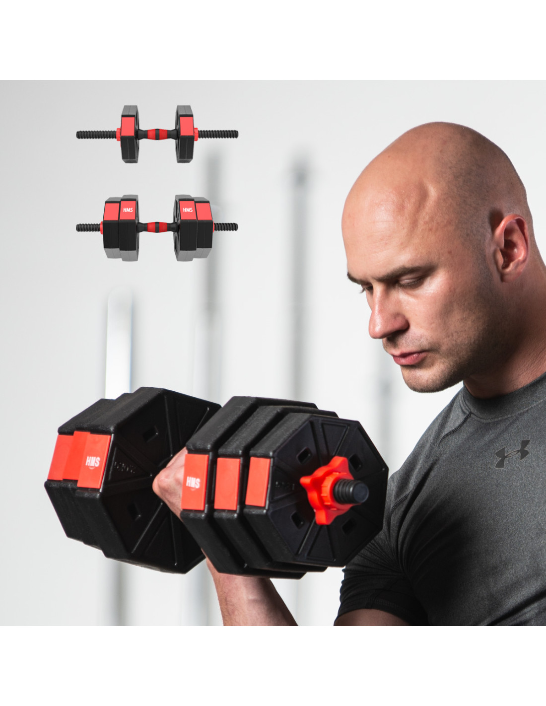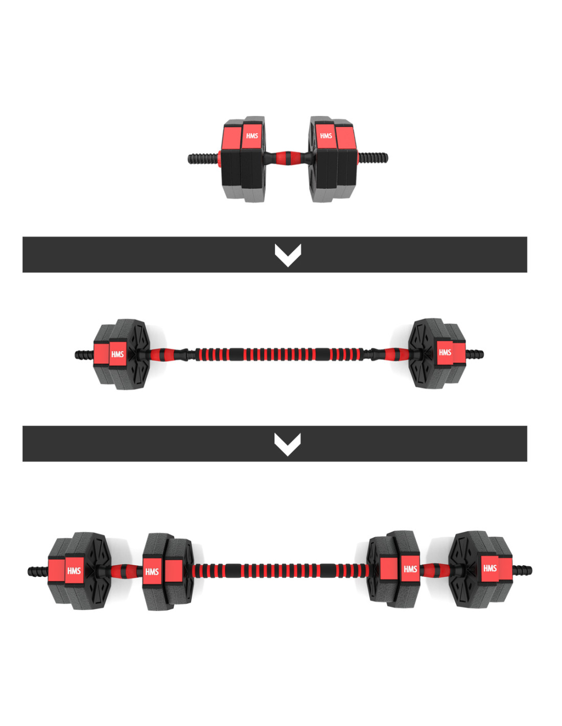 Eine Kurzhantel mit austauschbaren Hantelscheiben gehört zu klassischen und gleichzeitig unbedingten Elementen jedes Heim-Fitnessstudios. Dort kann unser Produkt SGC15 HMS nicht fehlen, d. h. ein Set, das aus zwei Kurzhanteln besteht. Sie sind mehrteilig und verfügen über die Möglichkeit der Zusammensetzung. Dadurch bekommen Sie zusätzlich eine Langhantel.