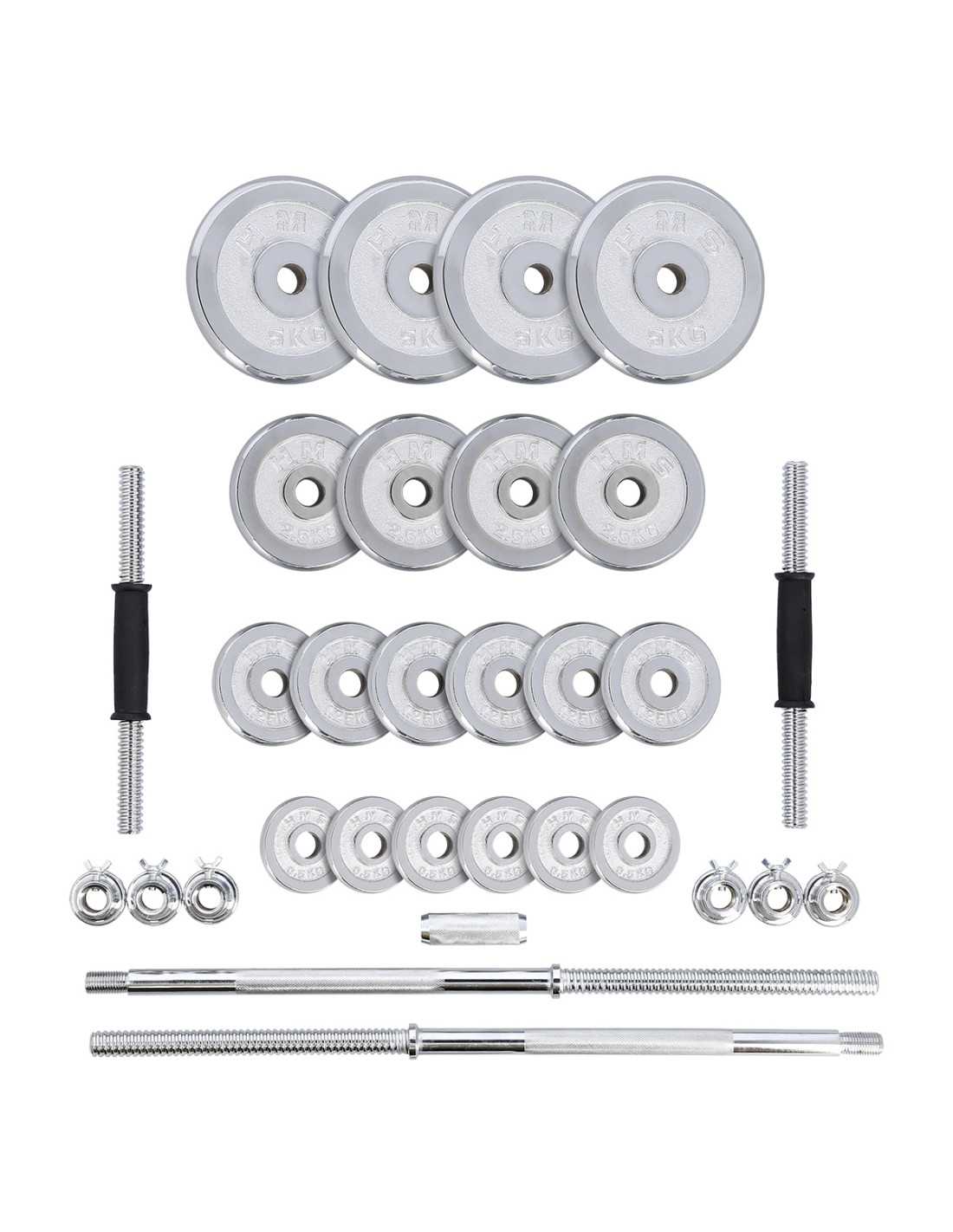 KURZHANTEL-LANGHANTEL IM KOFFER CHROM 2x25 KG HMS