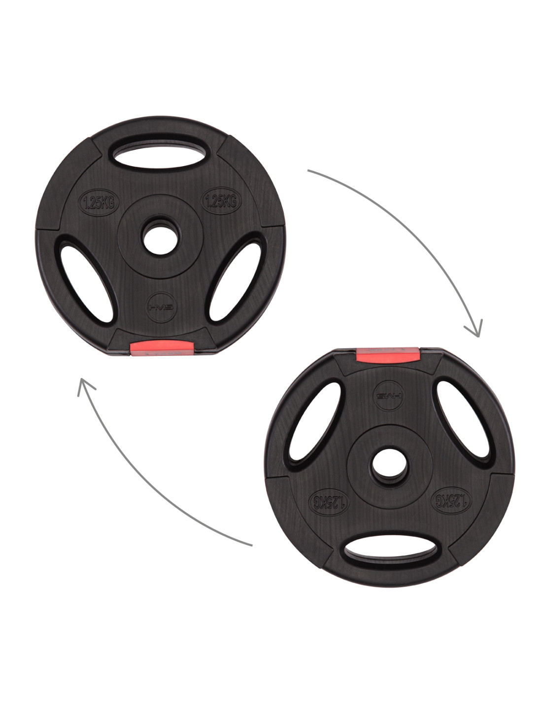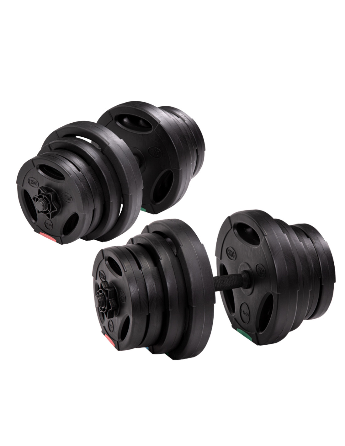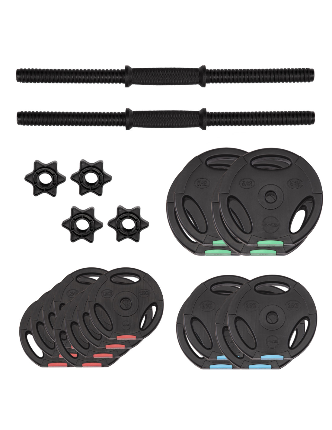 - Anzahl der Hantelscheiben im Set: 8x 1.25 kg / 4x 2.5 kg / 4x 5 kg