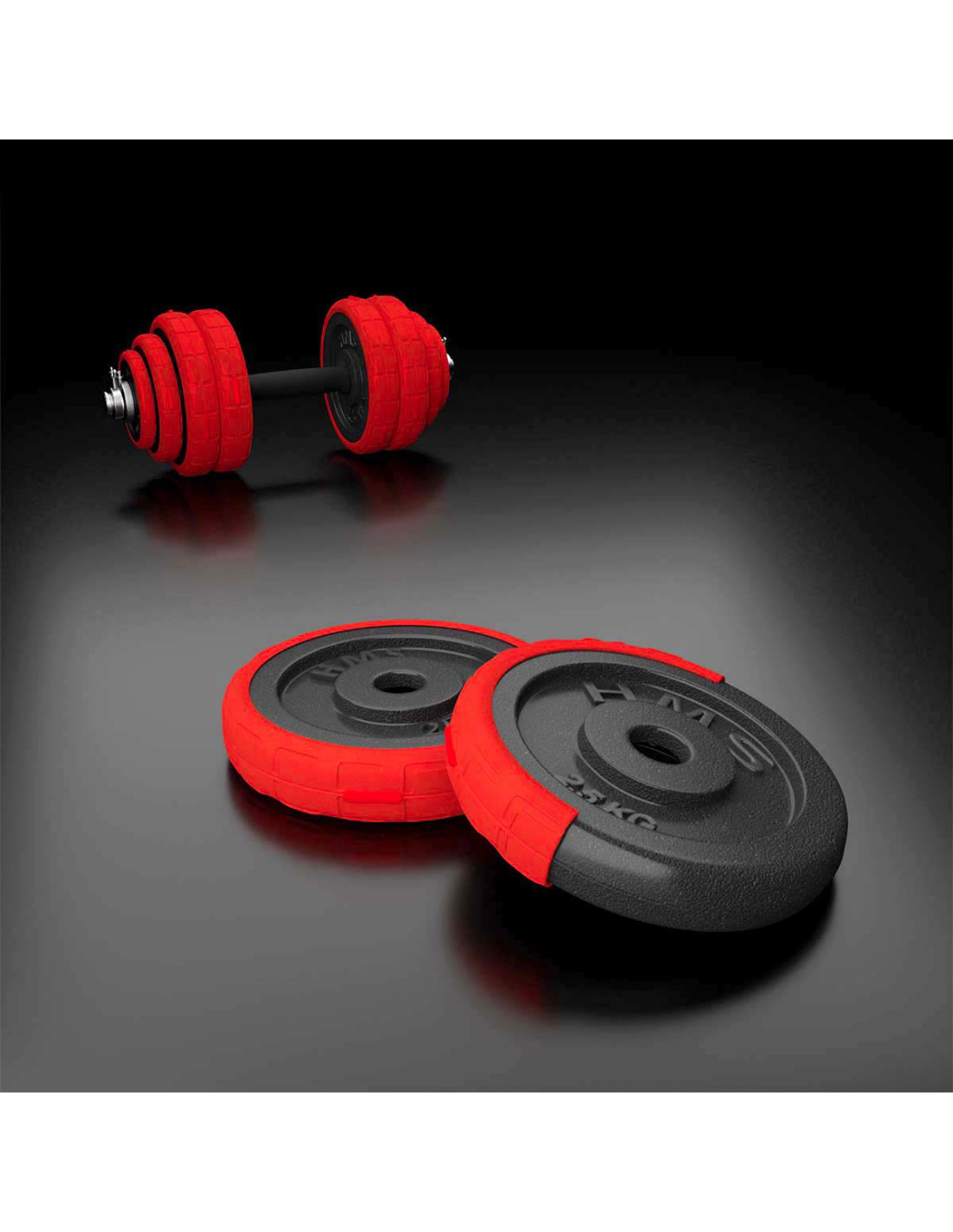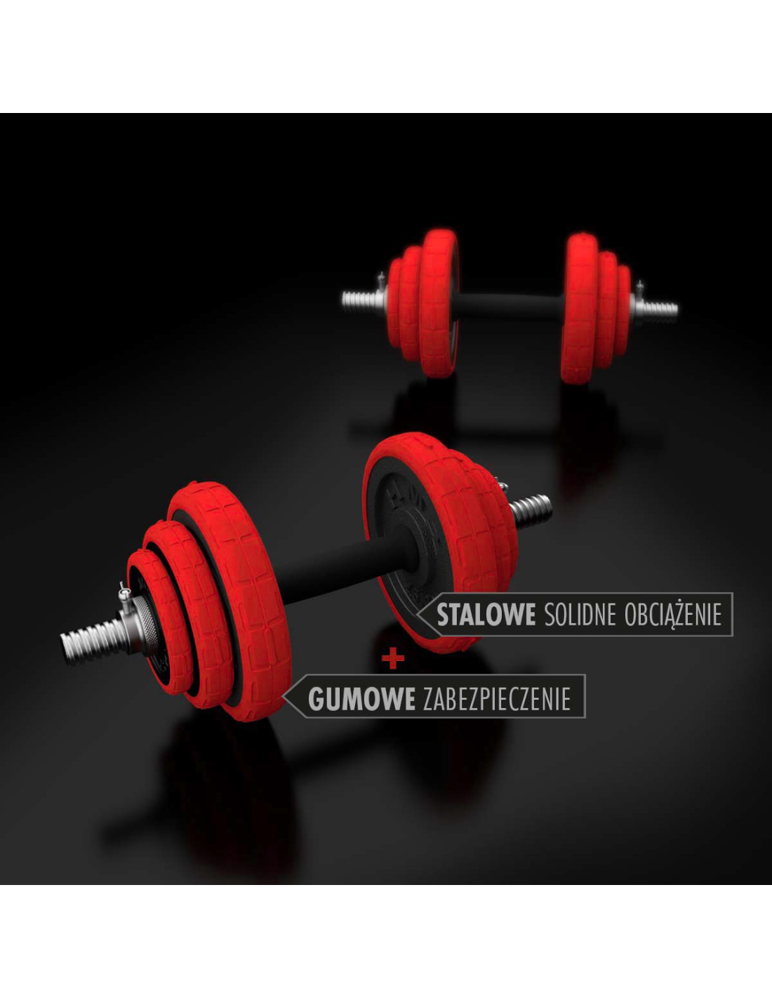 SGGX20 HMS ist ein Set der vernickelten Kurzhanteln und der Hantelscheiben mit der Gummibeschichtung, das auch die Funktion der Langhantel erfüllen kann.