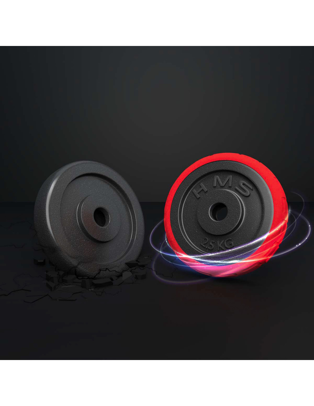 Unsere Marke HMS steht vor allem für die hochwertigsten Stoffe und dasselbe gilt für dieses Modell. SGGX20 wurde aus vernickeltem Stahl hergestellt. Seine Haupteigenschaft ist sehr hohe Robustheit. Dies garantiert eine langjährige und problemlose Benutzung. Ein zusätzliches Schutzelement bildet Gummi, mit dem jede Hantelscheibe beschichtet ist. Diese Lösung schützt nicht nur die Hantelscheiben vor einer Beschädigung, aber auch den Boden, auf den wir sie ablegen wollen. Im Falle eines Heim-Fitnessstudios ist das sehr wichtig. Gummi, außer der Schutzfunktion, dämpft die Schläge und ist geräuscharm.