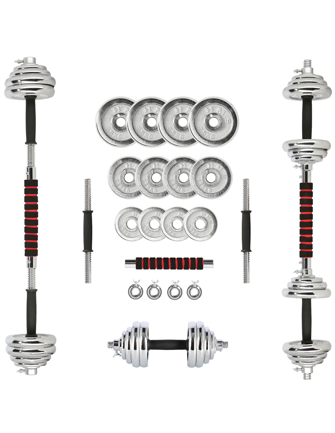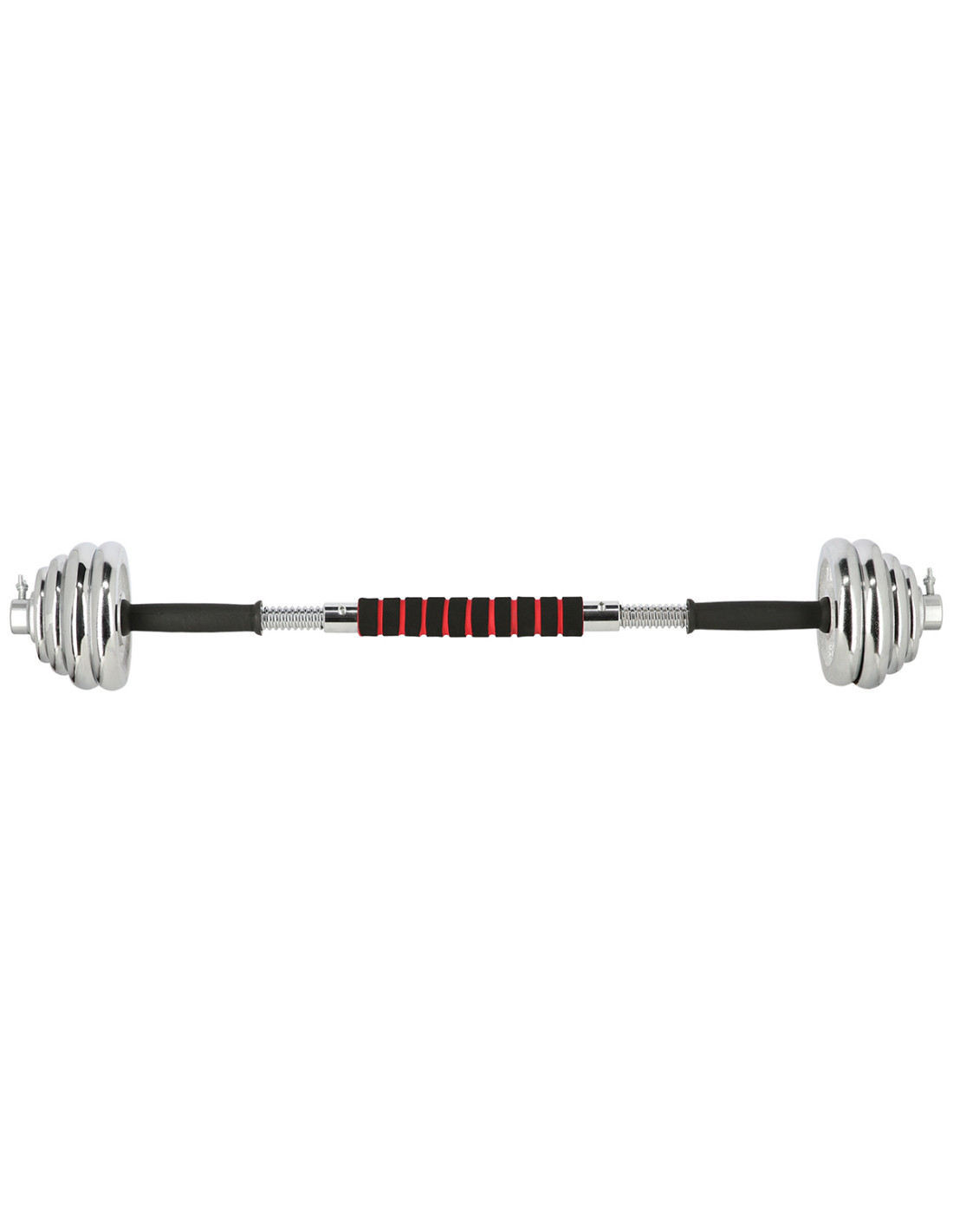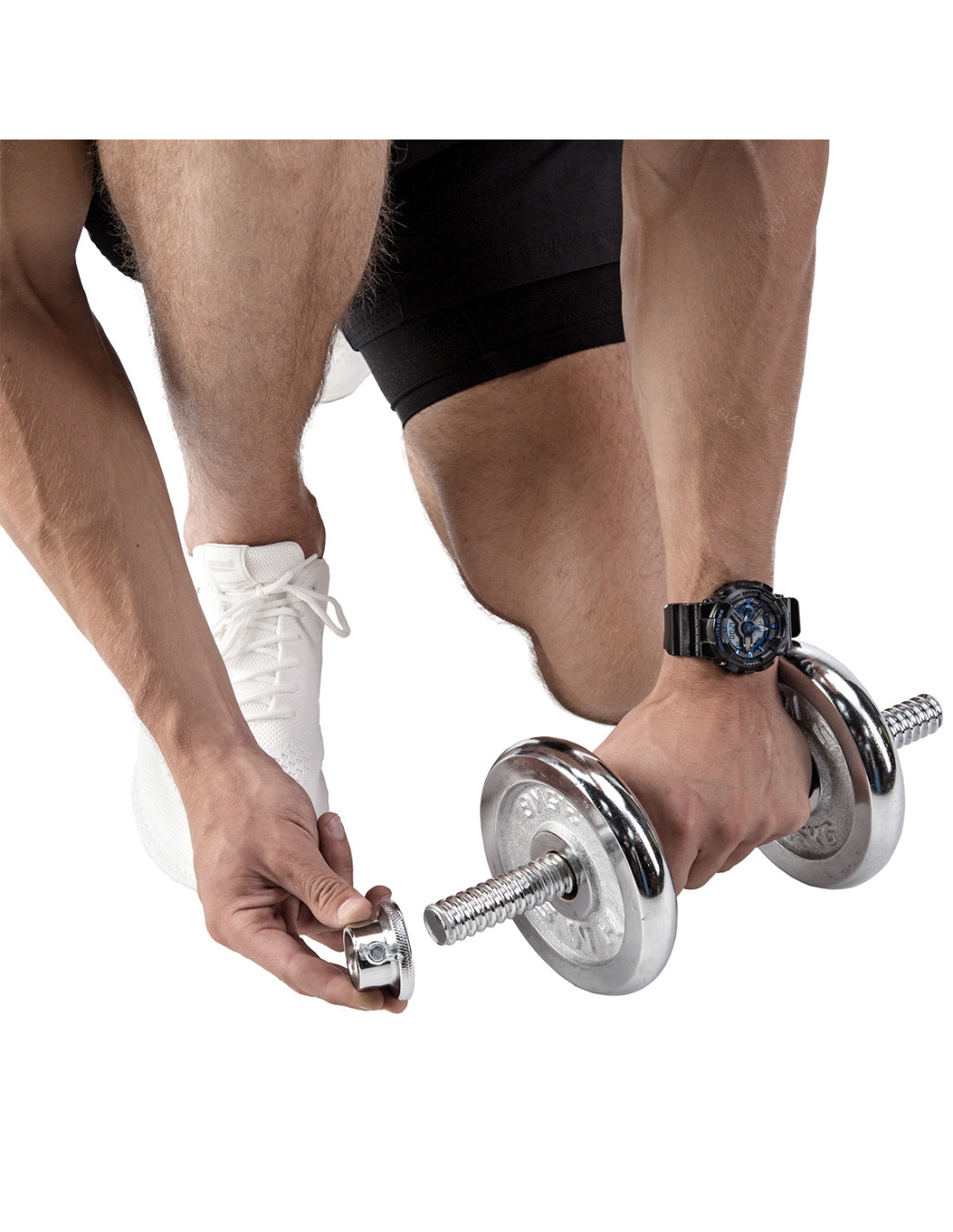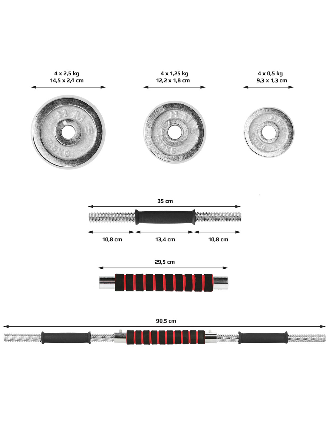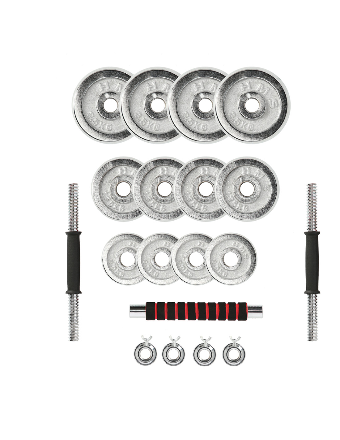STC21 HMS ist ein Set der verchromten Kurzhanteln im Koffer, das auch die Funktion der Langhantel erfüllen kann.