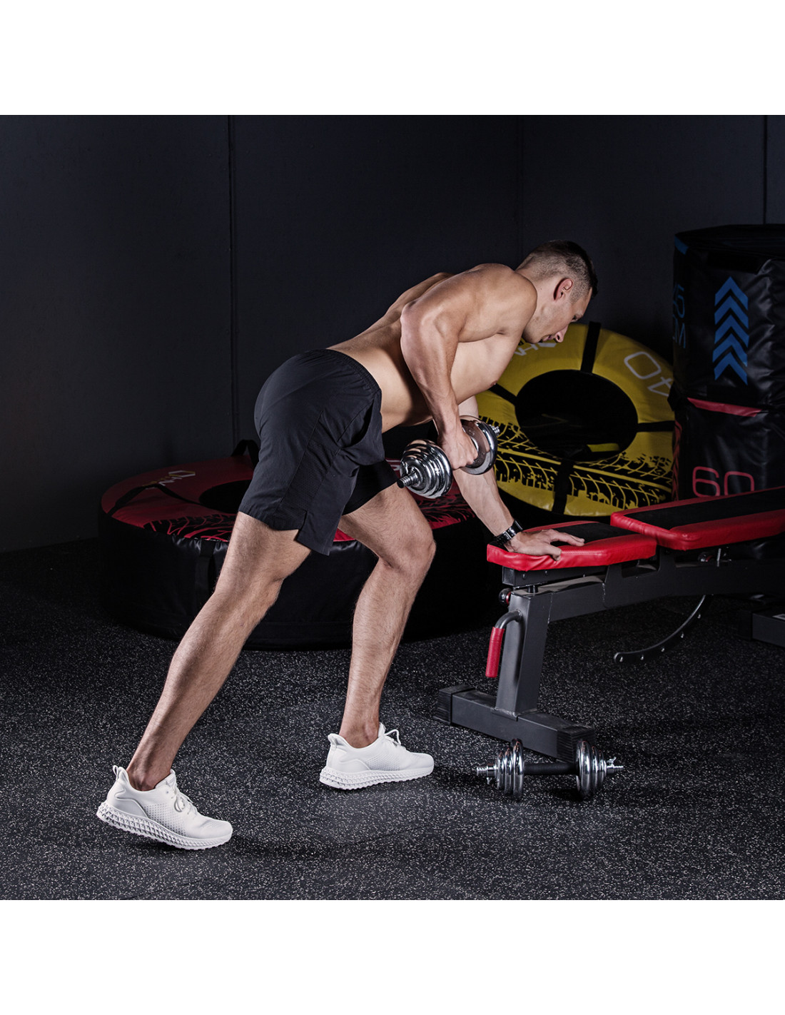 In einem voll ausgestatteten Fitnessstudio sind Kurzhanteln und eine Langhantel Pflichtelemente. In einem Heim-Fitnessstudio ist hingegen wichtig, den Platz zu sparen. Eine ideale Lösung für beide Fälle ist daher unser 2-in-1-Set STC21 der Marke HMS.