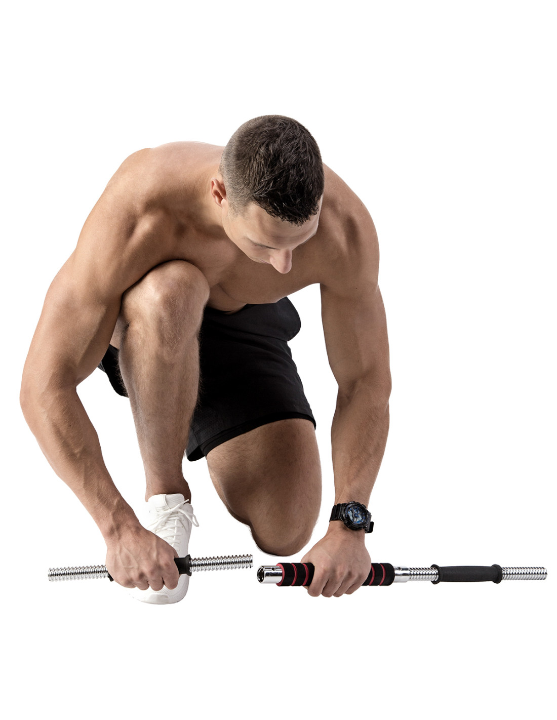 Unsere Marke HMS steht vor allem für die hochwertigsten Stoffe und dasselbe gilt für dieses Modell. STC21 wurde aus verchromtem Stahl hergestellt. Seine Haupteigenschaft ist sehr hohe Robustheit. Dies garantiert eine langjährige und problemlose Benutzung. Auf den Handgriffen der Kurzhanteln gibt es auch Gummi, das für ein sicheres und bequemes Greifen sorgt. Das Verbindungselement, mit dem man die Langhantel montieren kann, ist mit Schaumstoff bedeckt. Dies ist z. B. bei den Kniebeugen sehr nützlich, weil während der Ausführung kein unangenehmer Druck auf den Nacken ausgeübt wird.