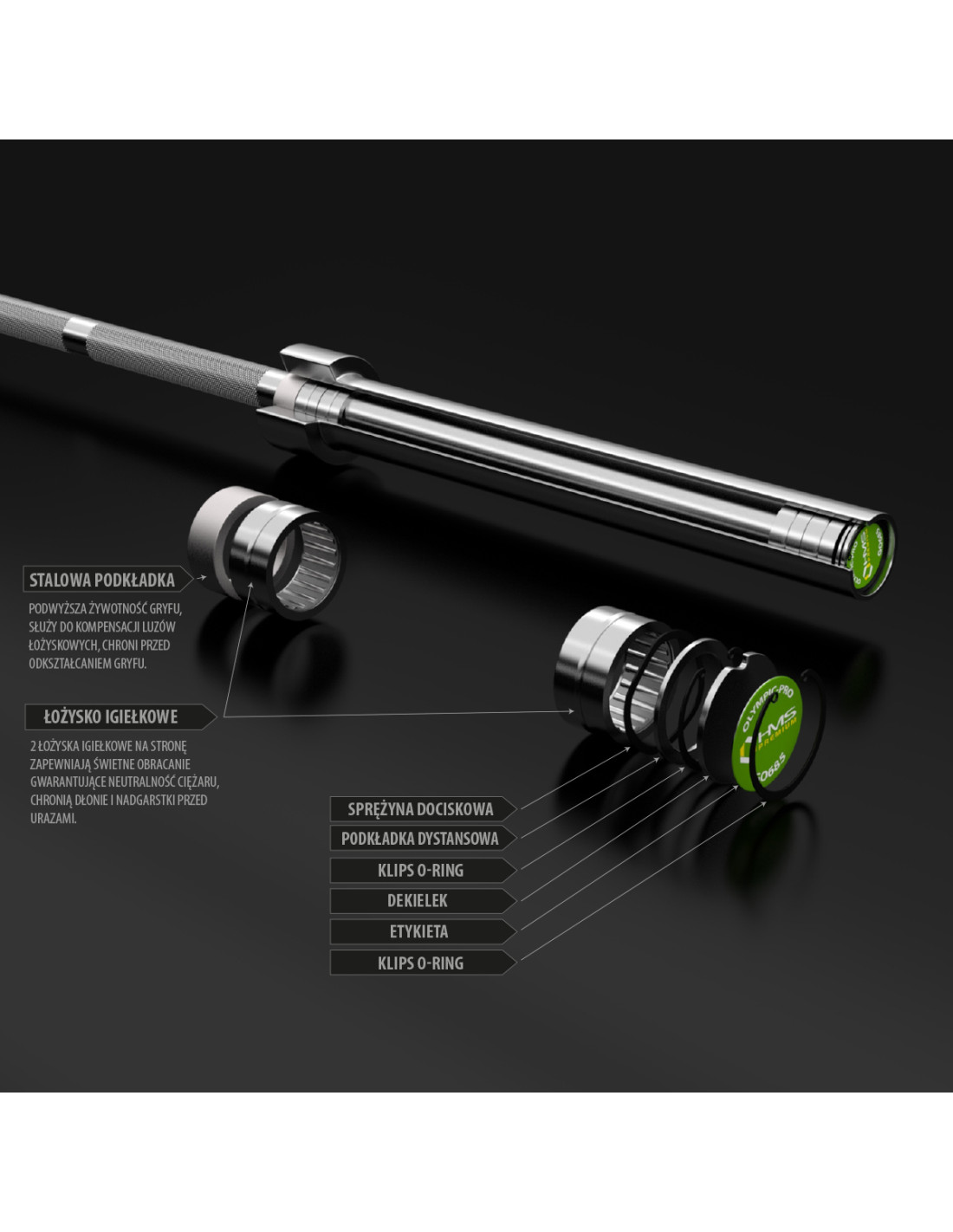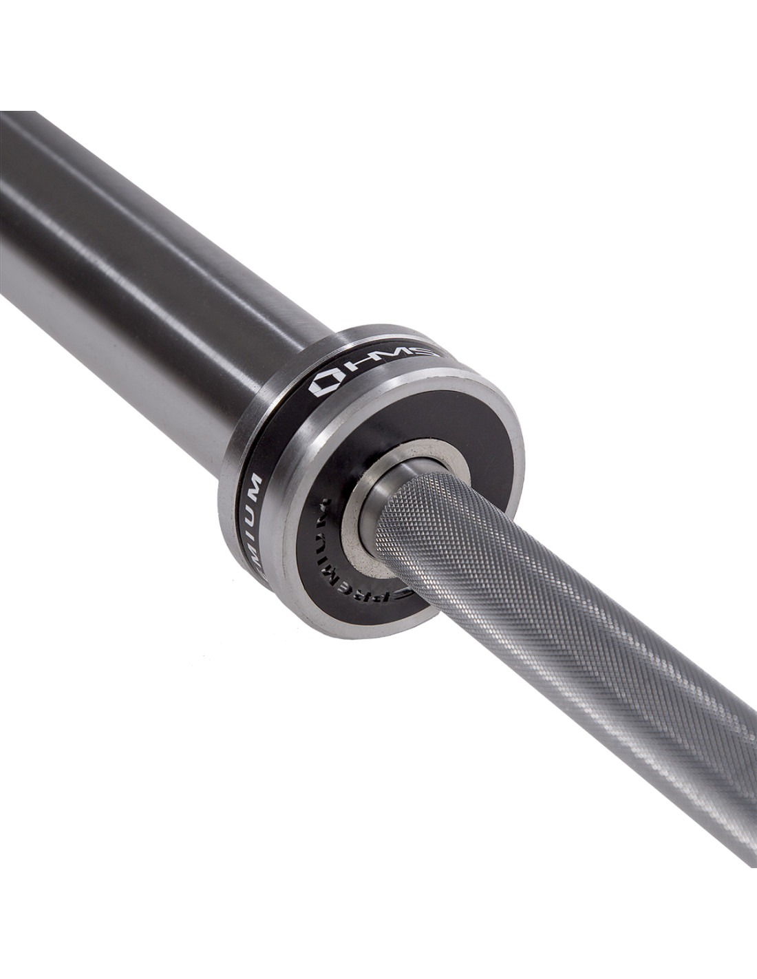Die olympische GO685 HMS Langhantelstange hat 4 Nadellager (2 pro eine Seite), die es ermöglichen, reibungslos den Teil für Hantelscheiben zu drehen. Die Konstruktion schließt Spannungen an den Rollenenden aus, was in der Folge Einfluss auf größere Betriebsdauer der Nadellager hat. Trotz des kleinen Querschnittes haben die Nadellager einen hohen Widerstand gegenüber Schwingungen und eine hohe Tragkraft. Zwei Plastikverschlüsse sind im Set enthalten und gewährleisten eine stabile Position der Belastung während des Trainings. Die Kappen haben im Innenteil Gummielemente, um das Lösen der Belastung zu verhindern.