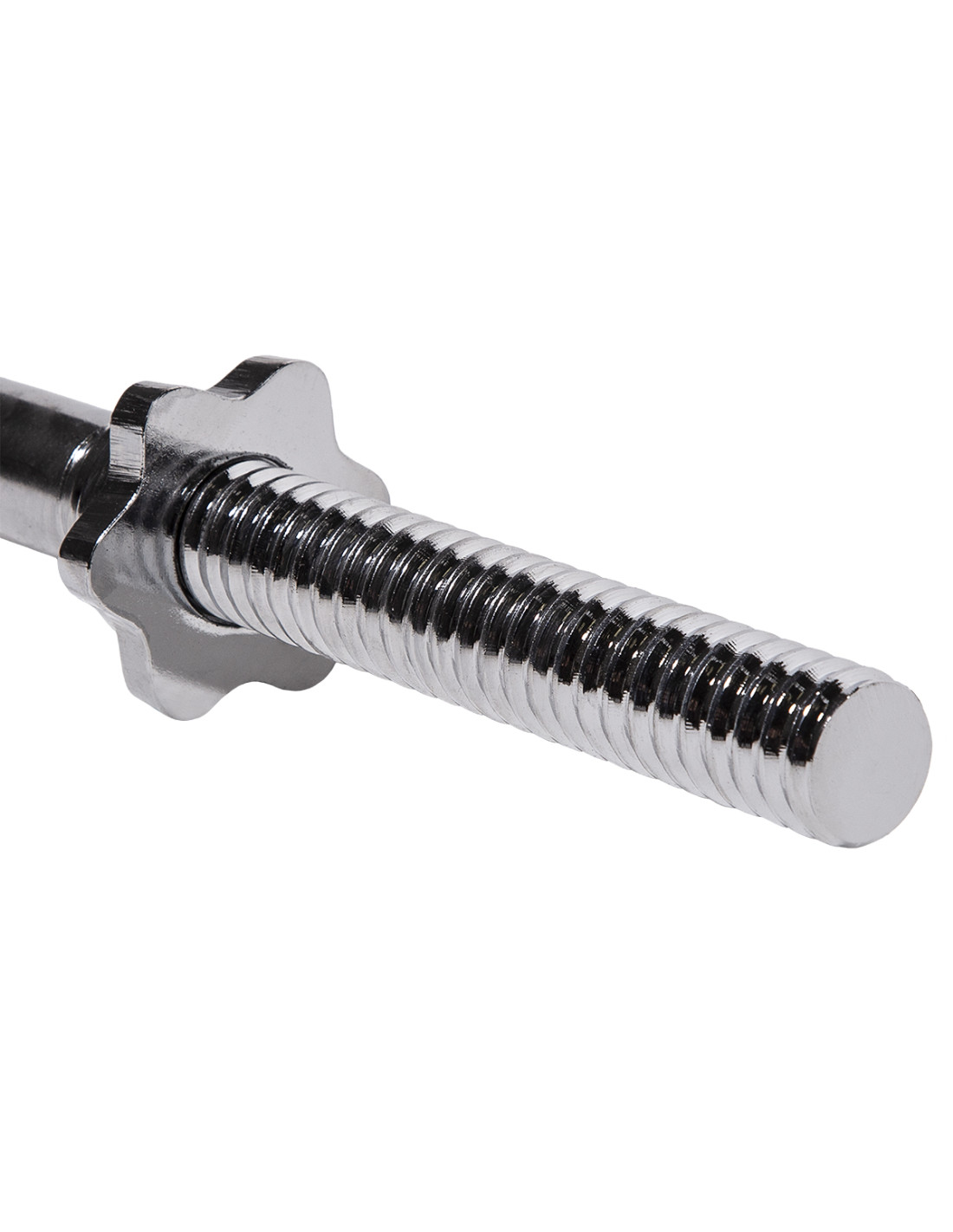 Die 120 cm HMS Curlstange wurde mit Sternverschlüssen ausgestattet. Um ein sicheres und bequemes Greifen zu gewährleisten, wurde der Greifteil dieser Langhantelstange sorgfältig gerändelt. Im Set finden Sie zwei Schraubverschlüsse. Diese Art von Verschlüssen gewährleistet Ihnen eine stabile Position der Belastung während des Trainings.