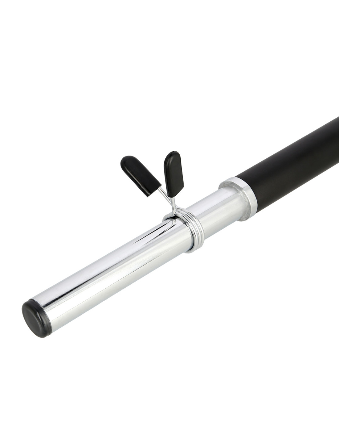 Sie wurde aus hochwertigem, verchromtem Stahl hergestellt, was einen großen Einfluss auf die ausgezeichnete Robustheit dieses Produkts hat. Außerdem ist sie mit speziellem Schaumstoff bedeckt, daher liegt sie gut in der Hand und rutscht nicht während der Trainings. Dadurch verhindert man die Entstehung von Hühneraugen und Schürfwunden. Im Set finden Sie auch Federverschlüsse, mit denen die Hantelscheiben an der Langhantelstange gehalten werden. Man vermeidet zusätzlich ein seitliches Abrutschen der Hantelscheiben, unabhängig von einer durchgeführten Übungseinheit.