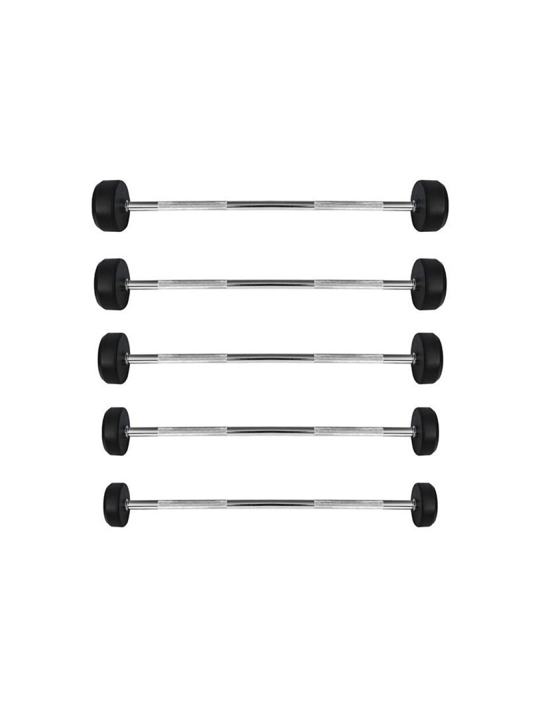 Die GSG HMS Langhantel / Langstange mit Hantelscheiben aus Gummi ist in folgenden Gewichtsvarianten erhältlich: 10, 15, 20, 25, 30, 35, 40 oder 50 Kilogramm.